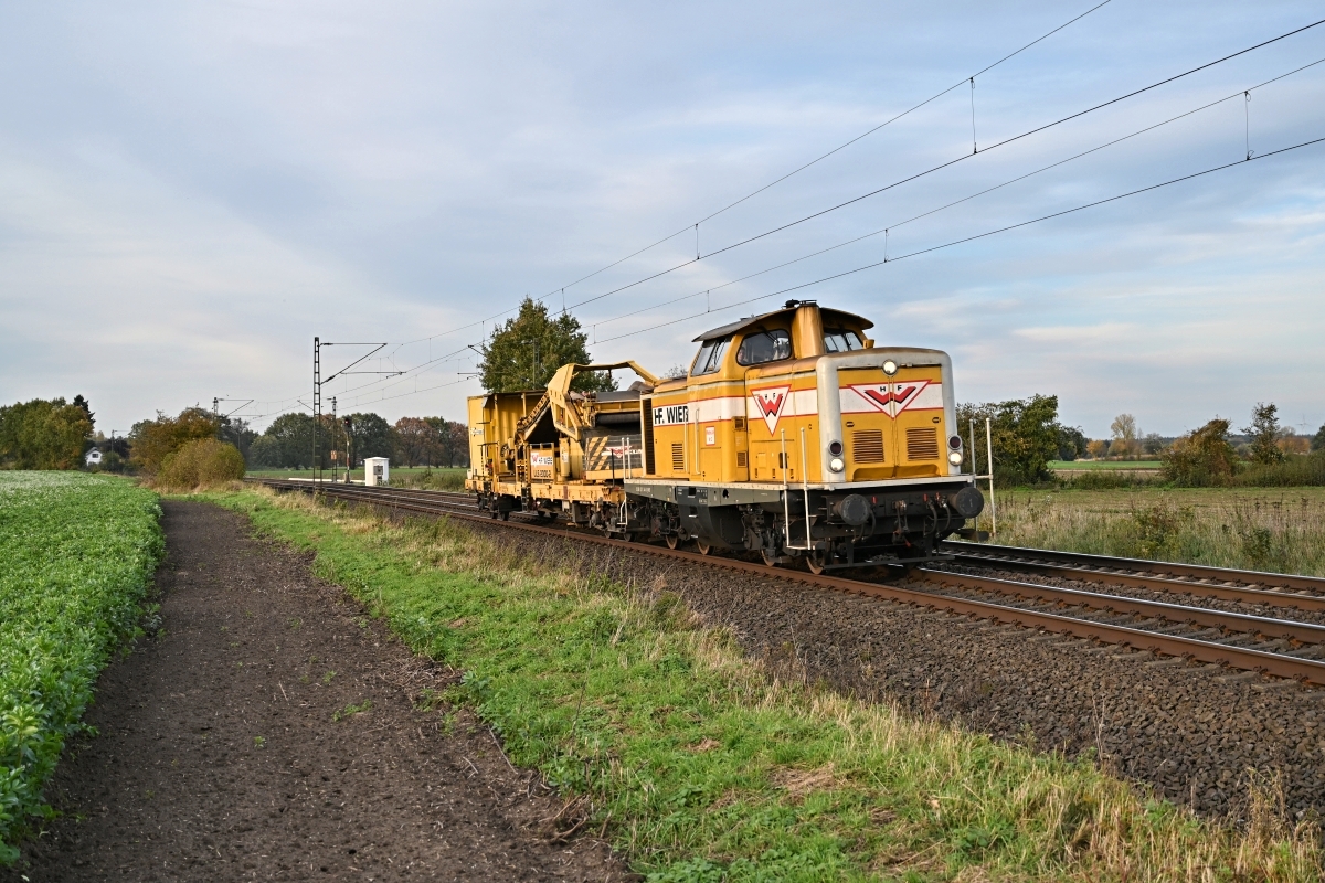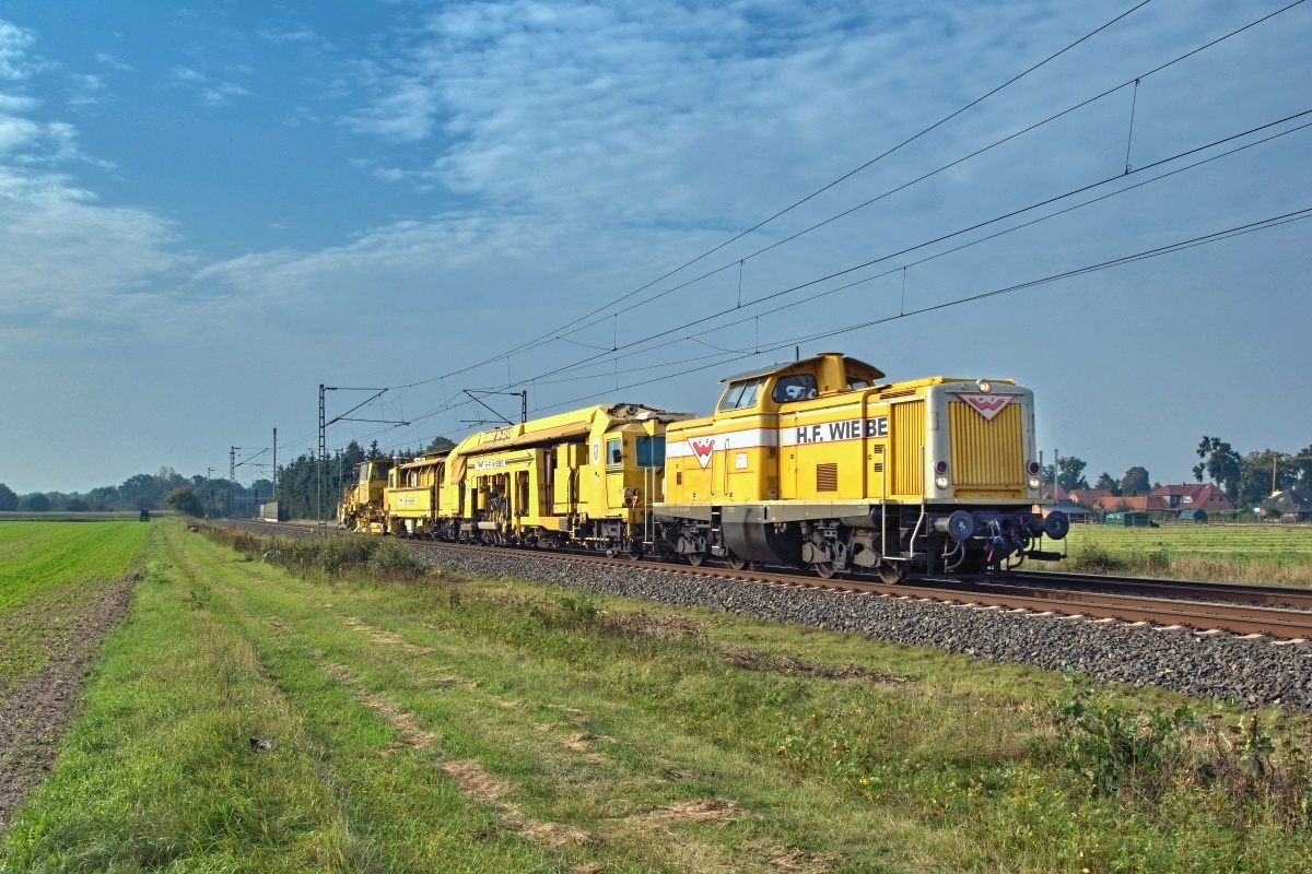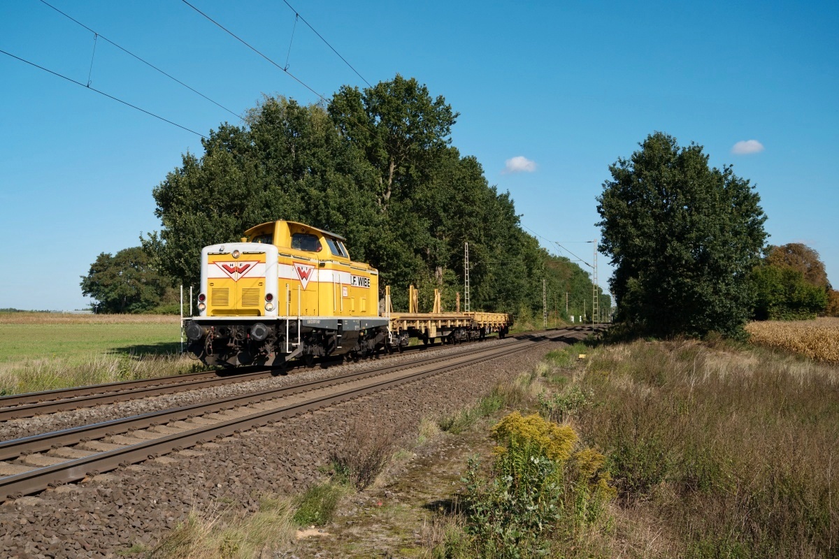 war hier am 30.09.2022 bei Bad Qeynhausen (HOY) mit einem Bauzug Rtg.