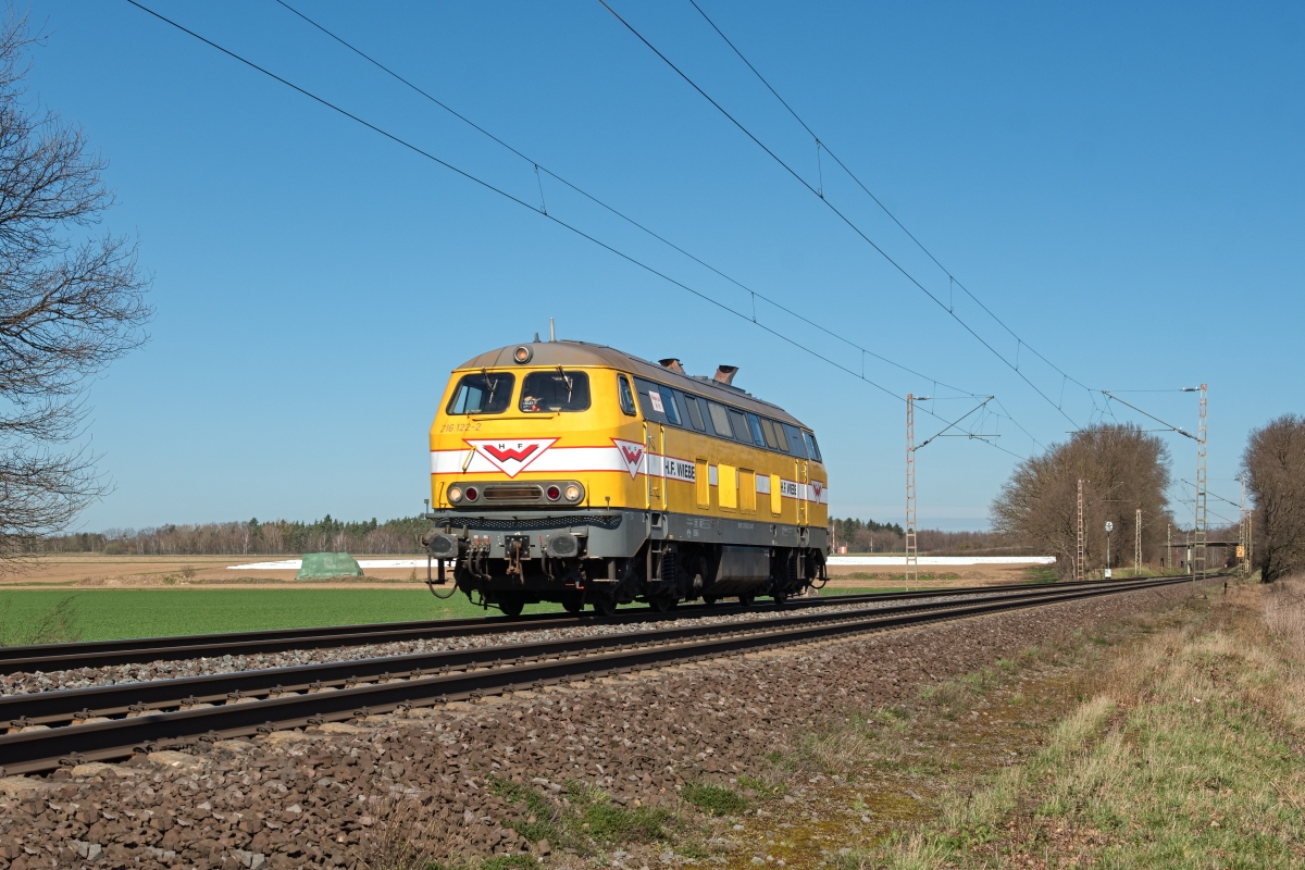 Dto. 216 122-2 am 10.04.2019. Die Lok war hier am 10.04.2019 bei Rohrsen