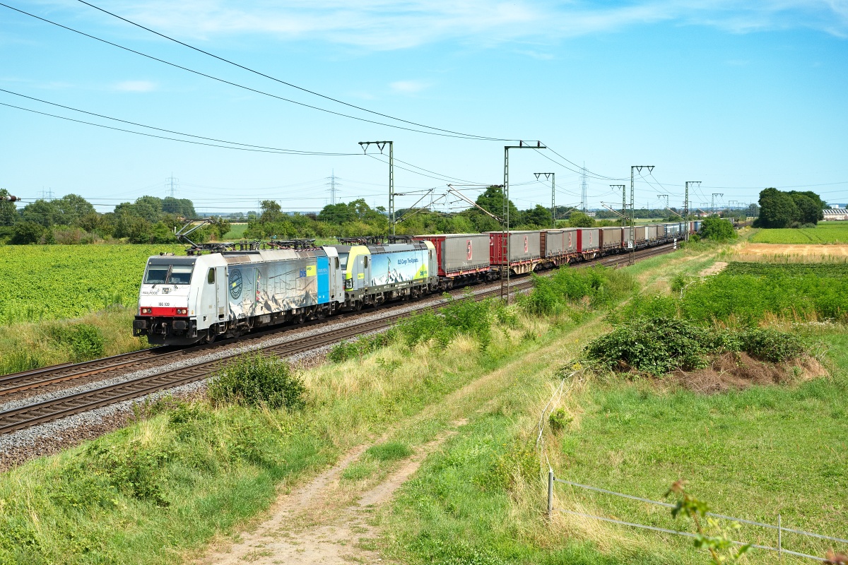 Dto. 186 109-5 am 15.07.2024 bei Klein-Gerau (FKGE) mit 475 406-5 (k)