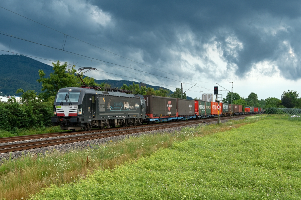 war hier am 09.07.2021 bei Wiesental (RWI) mit einem Containerzug Rtg.