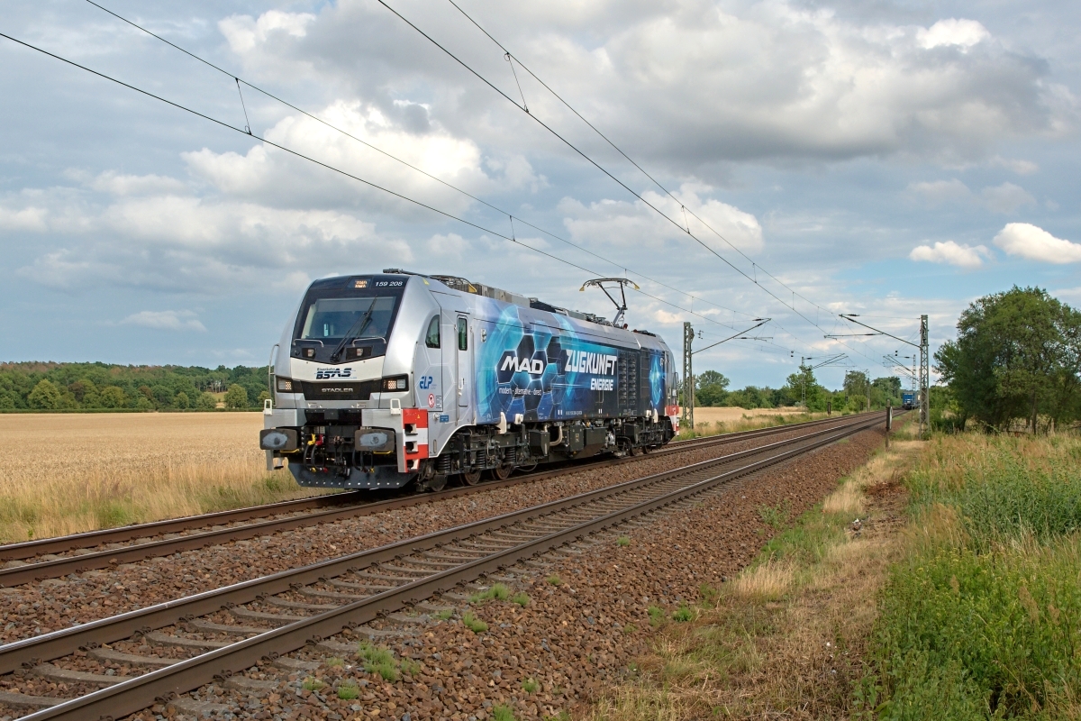 Dto. 159 208-8 am 09.07.2020 als Tfzf bei Glaubitz (DGLA) in Rtg. Riesa...