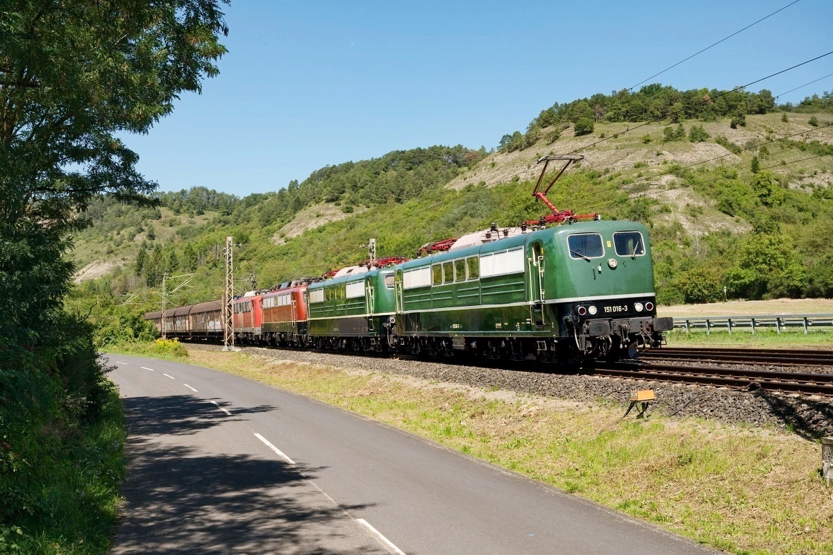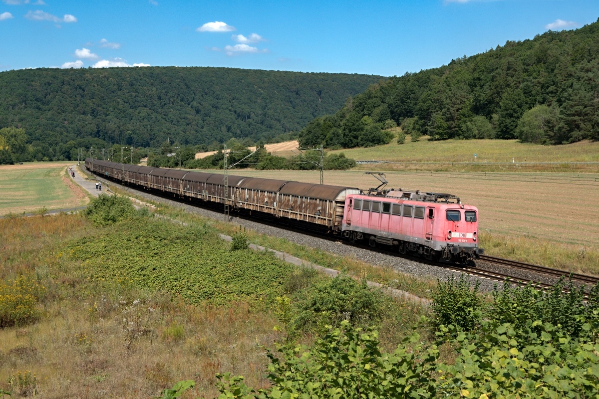 11.08.2023 bei Karlstadt (NKA) mit den Wagenloks 151 038-7, 139 309-9, 140