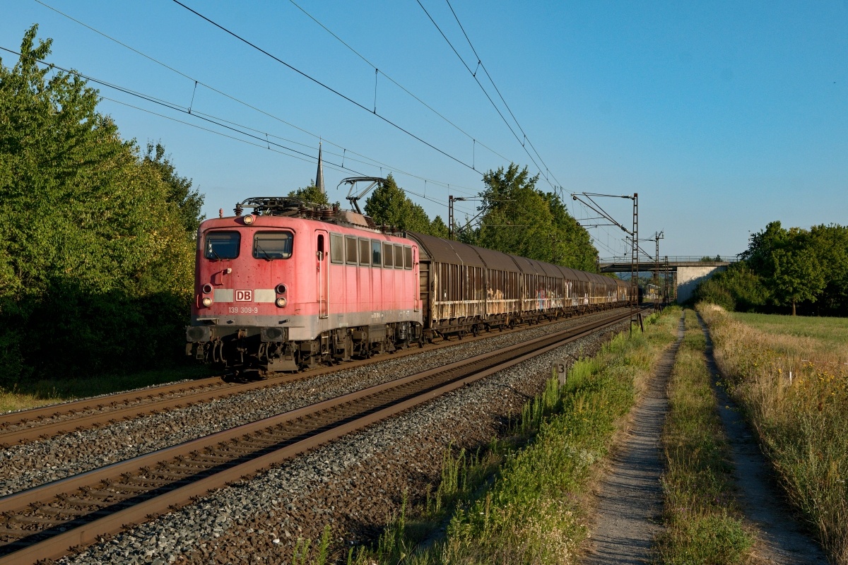 Dto. 139 309-9 dann am 05.08.2020 im letzten Abendlicht bei Thüngersheim mit