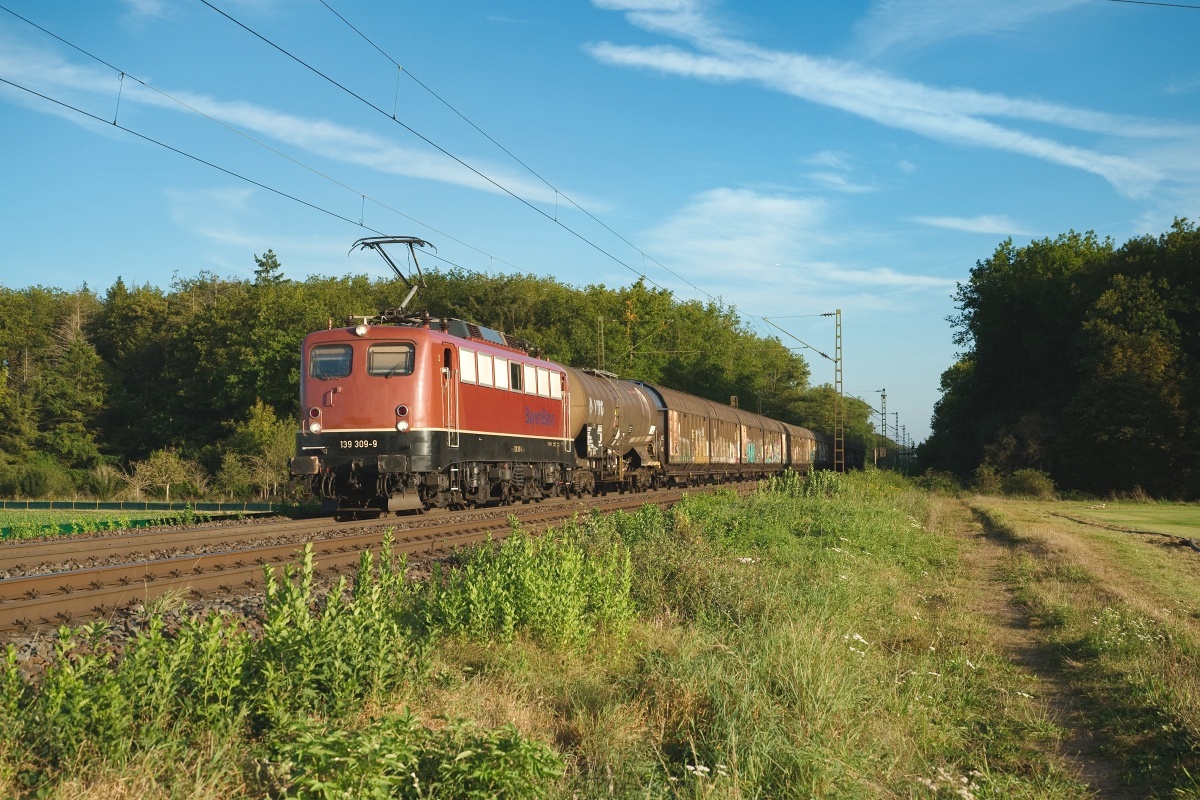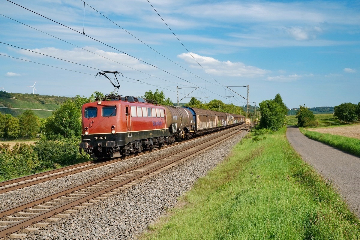 Dto. 139 309-9 am 02.10.2023 in der Ausfahrt von Mainz-Bischofsheim (FMB)