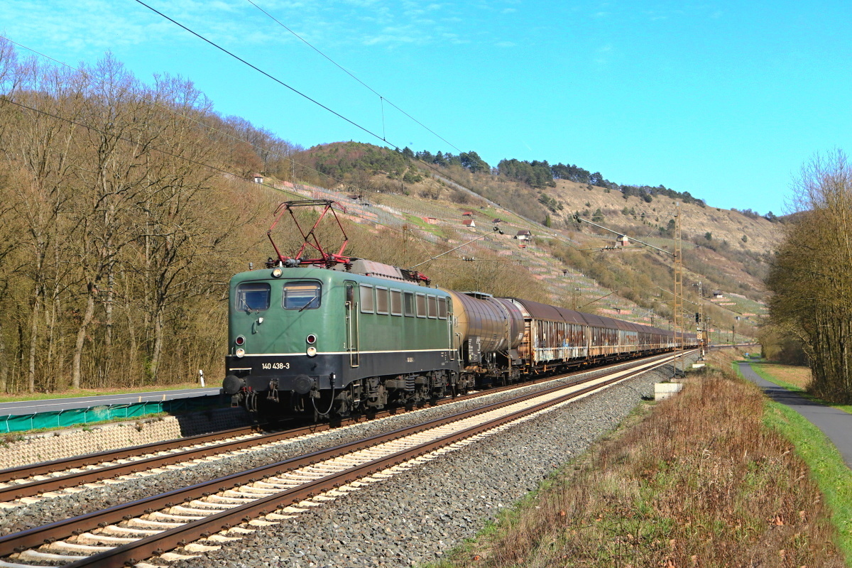 Dto. 140 438-3 am 08.04.2018. Hier passierte die Lok Gambach mit dem