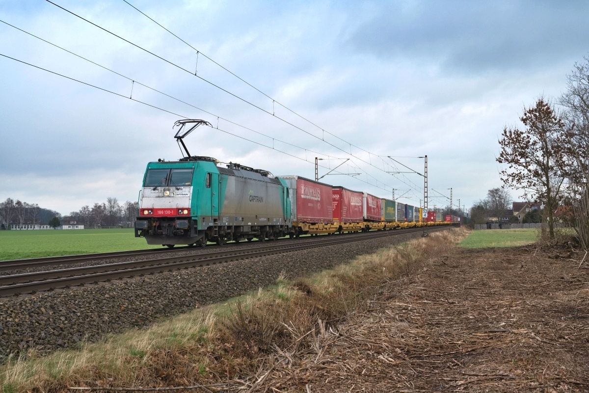 Dto. 186 130-1 am 09.03.2022 bei Bückeburg (HBKB) mit dem DGS 69610