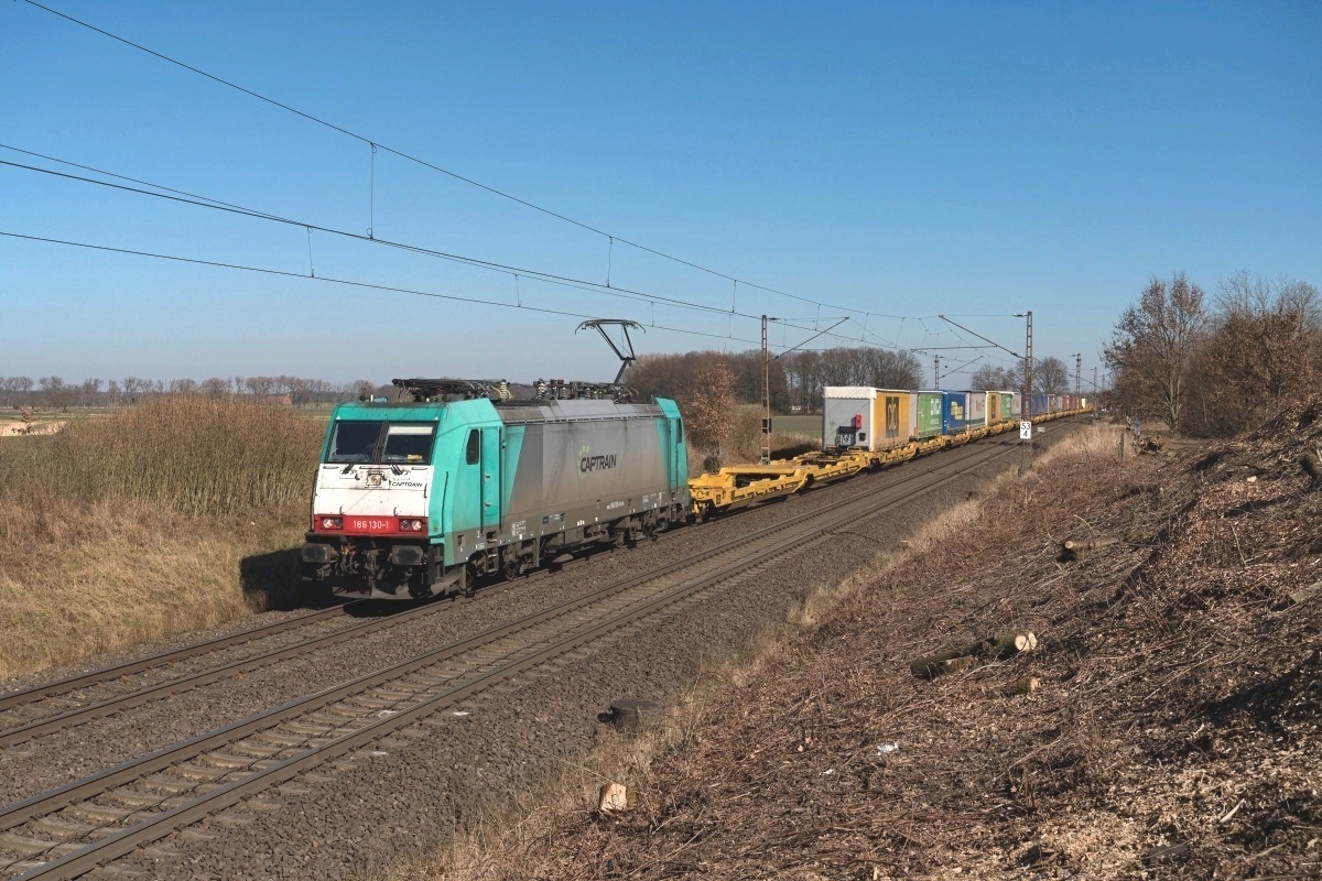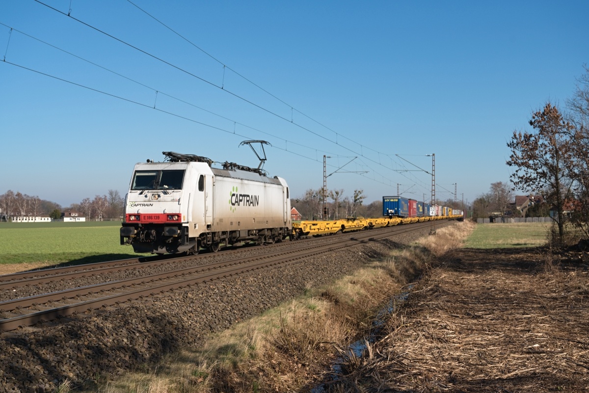 Dto. 186 139-2 am 02.03.2022 bei Bückeburg (HBKB) mit dem Clip KLV Rtg.