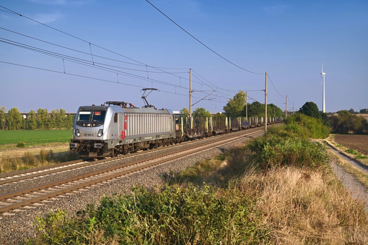 Dto. 187 505-3 am 18.09.2024 bei Niederndodeleben (LNR) mit einem Stahlzug