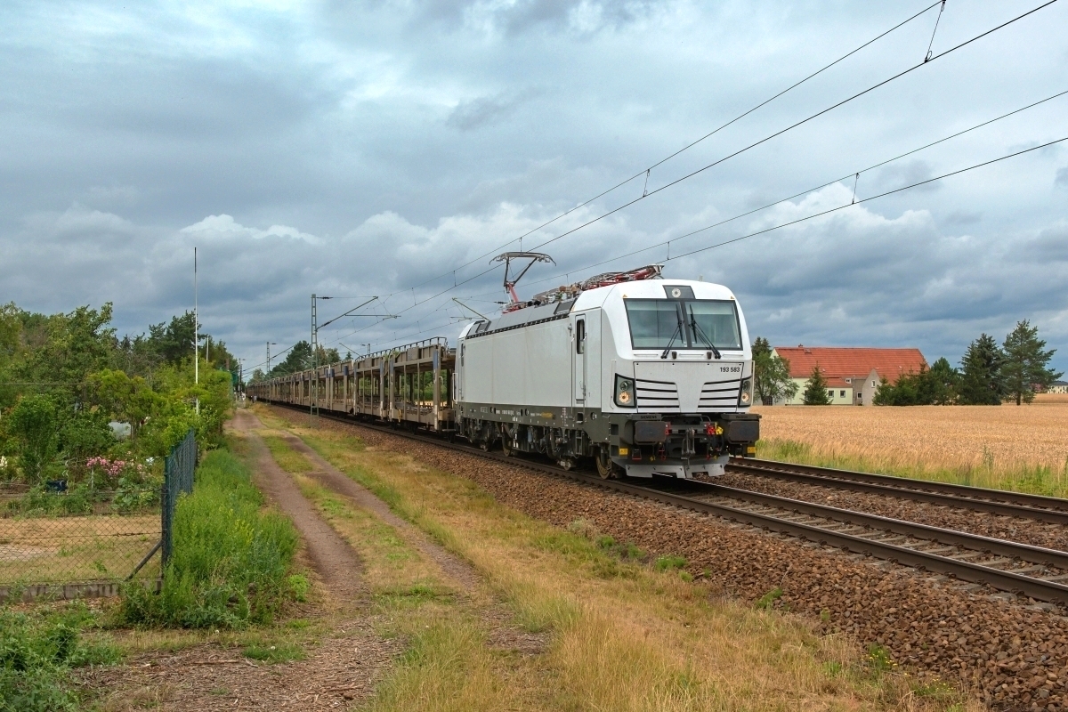 Evesen mit Wagenlok 193 583-2 und einem Voll-GEFCO Autozug Rtg.