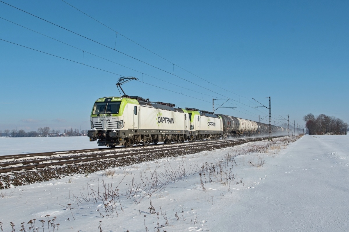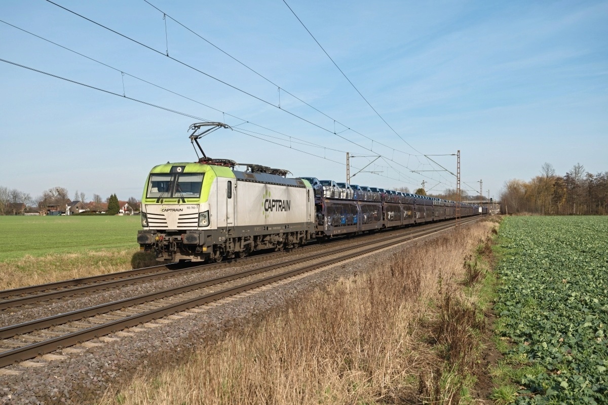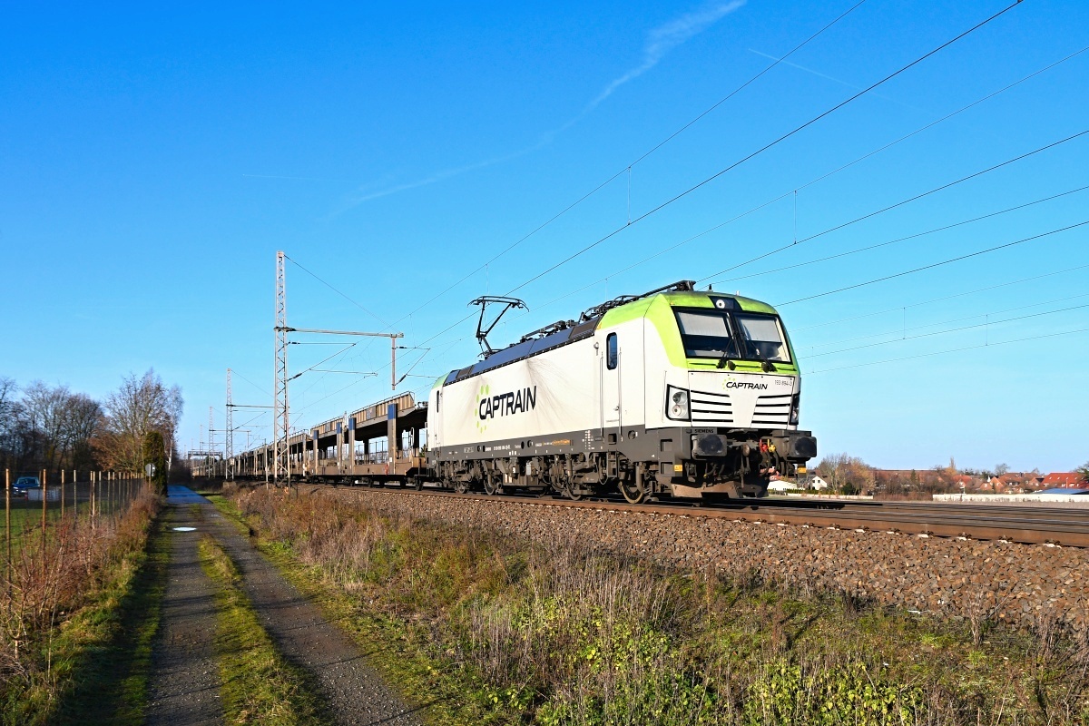 Dto. 193 781-2. Die Lok passierte hier am 10.12.2021 Bückeburg mit dem