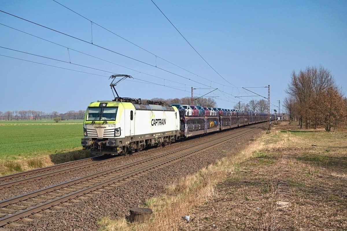 Dto. 193 782-0 am 25.03.2022 bei Bückeburg (HBKB) mit einem Voll-GEFCO Autozug