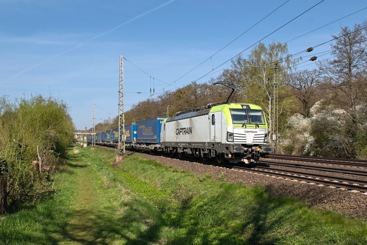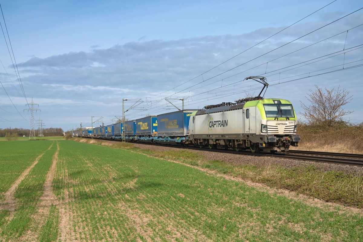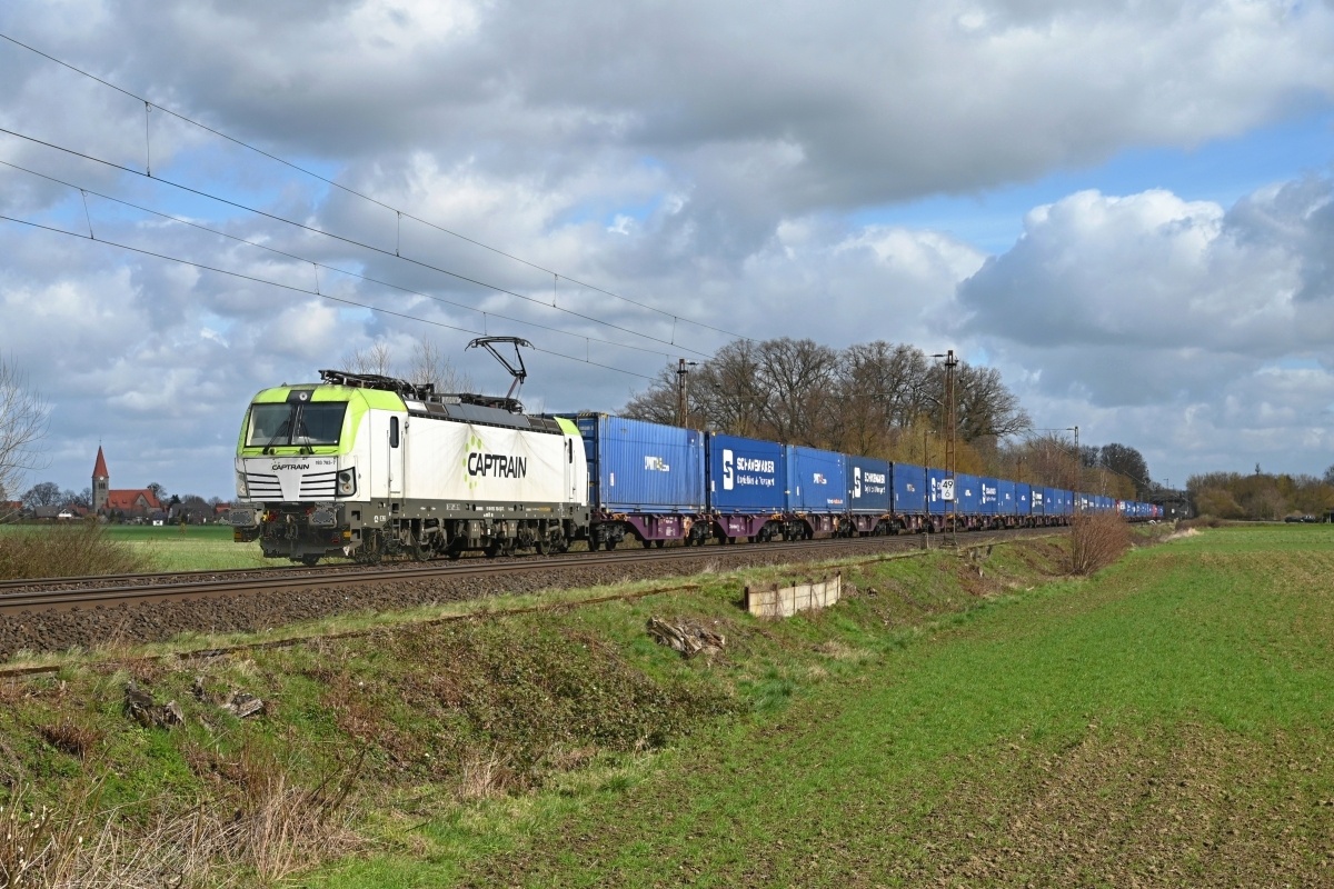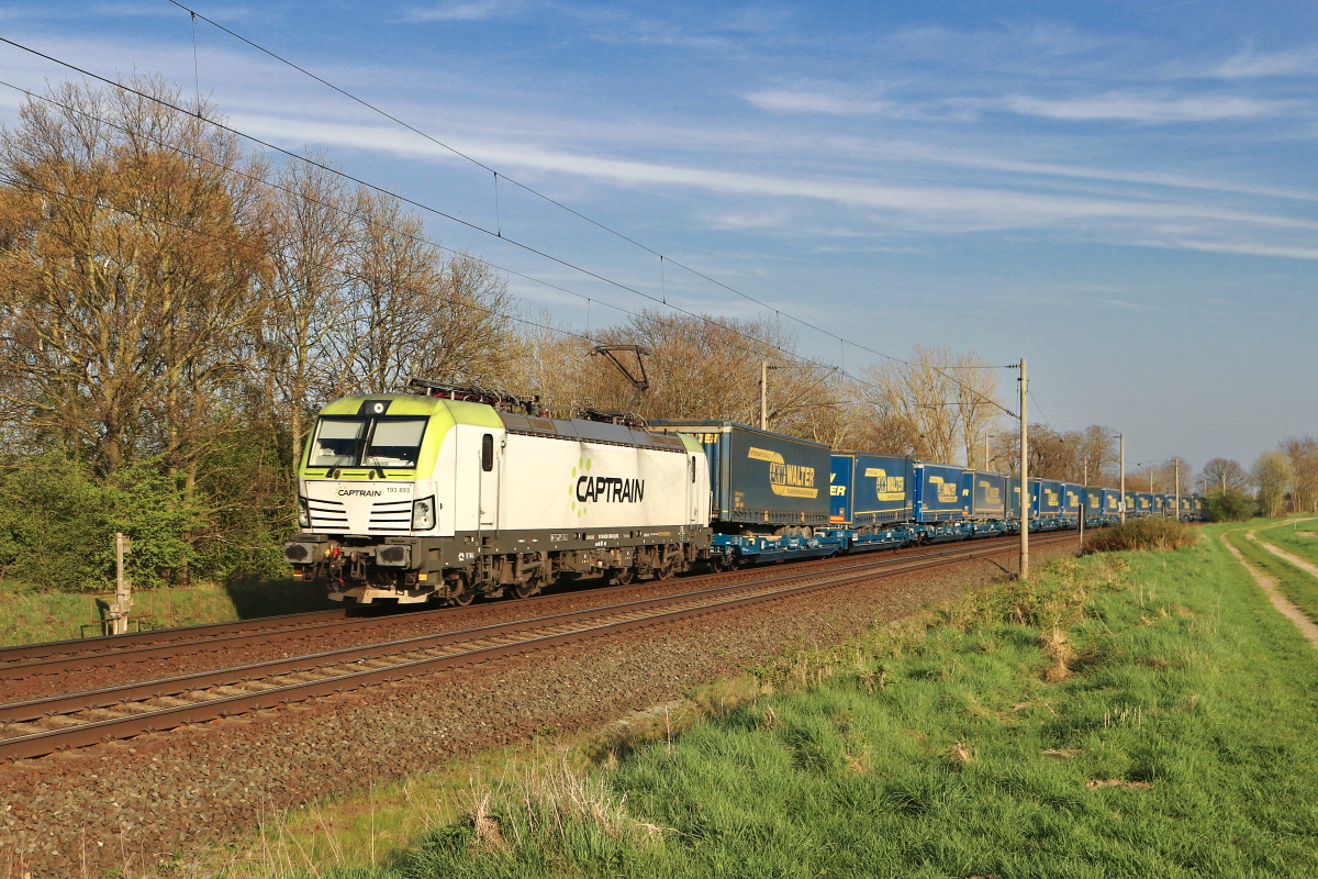 Dto. 193 783-7 am 28.03.2023 bei Kirchhorsten (HKHN) mit einem CT-Zug Rtg.