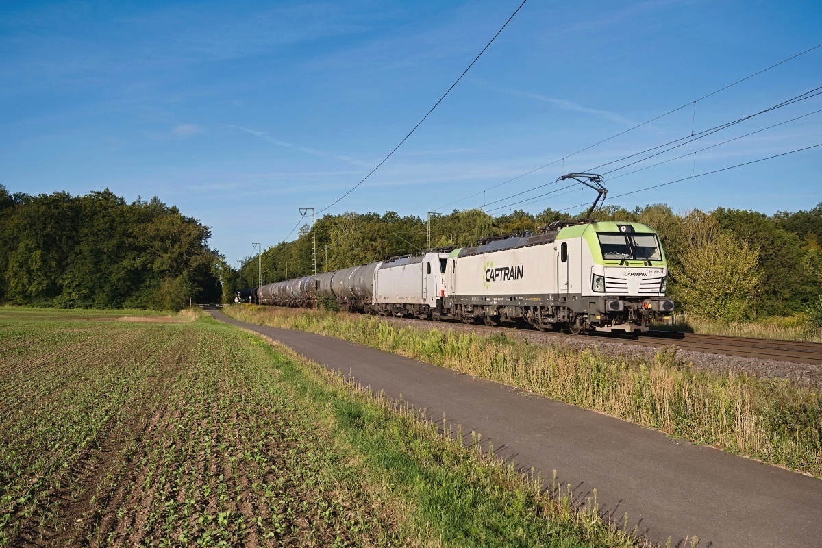 Dto. 193 785-3 am 06.09.2023 im Gümmer Wald (HGUE) mit Kesselwagen Rtg.