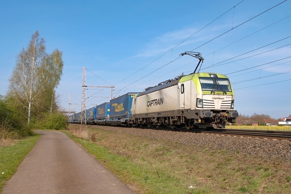 Dto. 193 896-8 am 14.04.2021. Hier passierte die Lok den Bückeburger Bahnhof