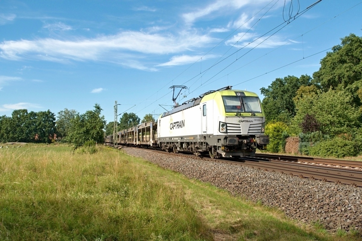 Dto. 193 898-4 am 19.08.2020 bei Bückeburg (HBKB) Evesen mit Wagenlok 193