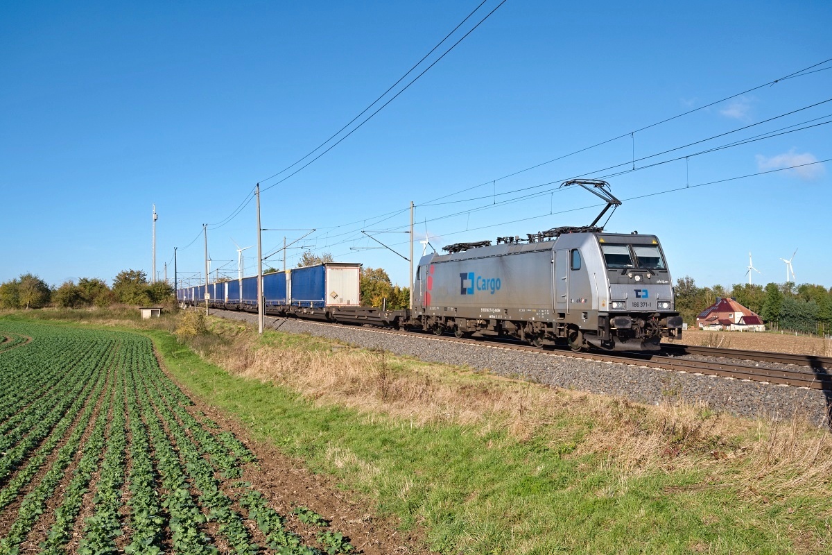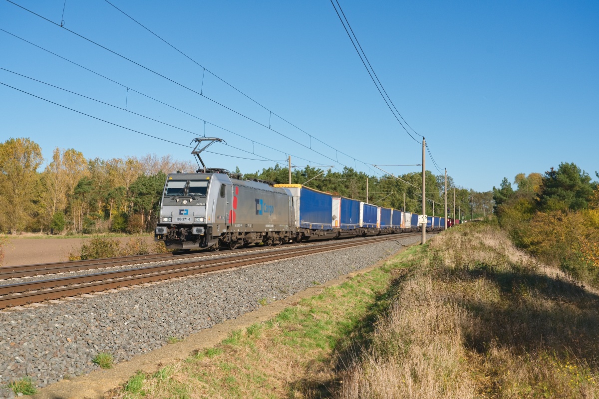 186 371-1 am 15.10.2024 bei Ovelgünne (LOV) mit dem Lovosice Shuttle DGS