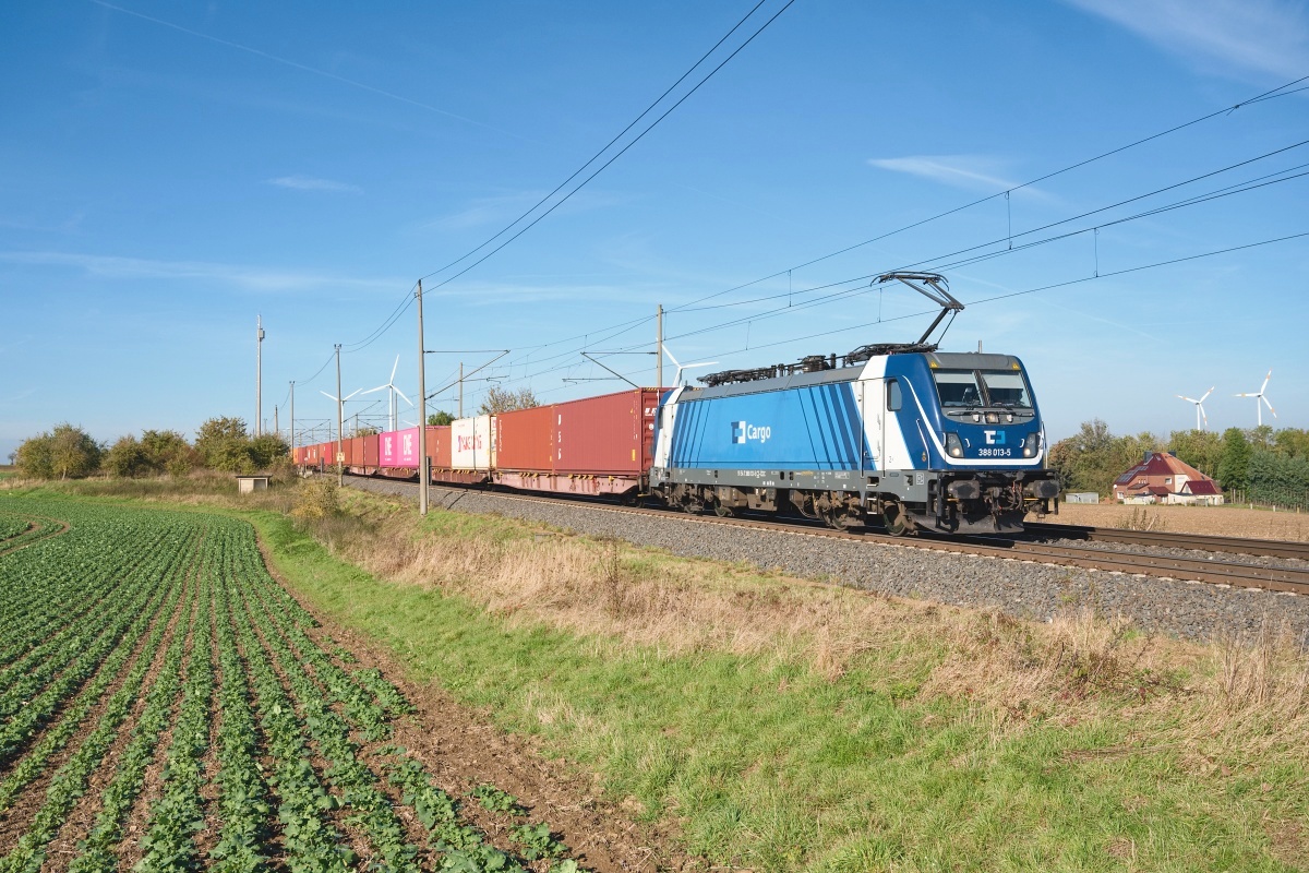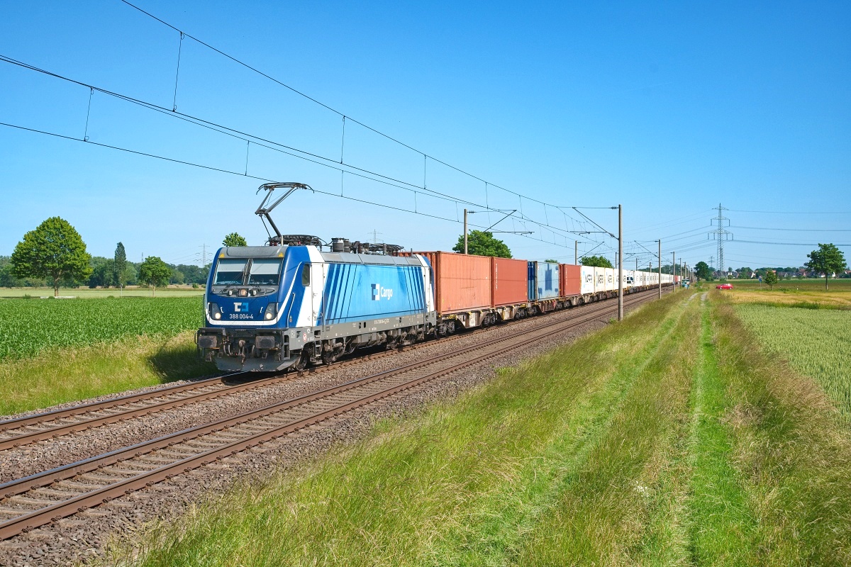Dto. 388 005-1 am 06.08.2024 bei Schandelah (HSDL) mit dem Containerzug