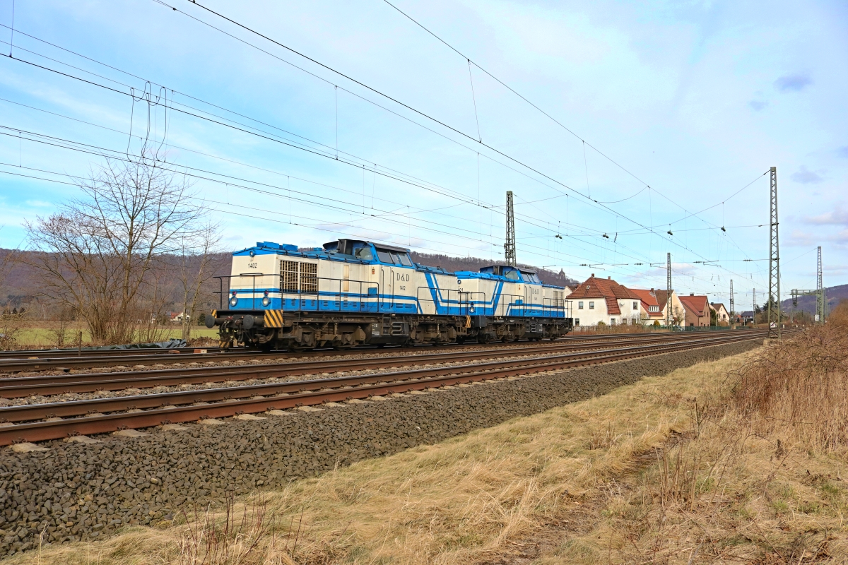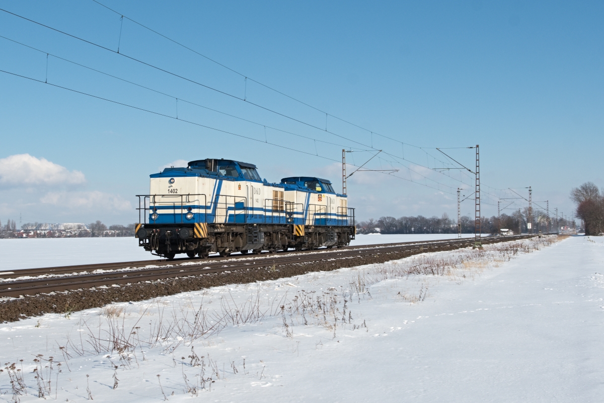 Hier waren die Loks 1401 und 1402 im Nachschuss am 05.03.2018 bei Vennebeck