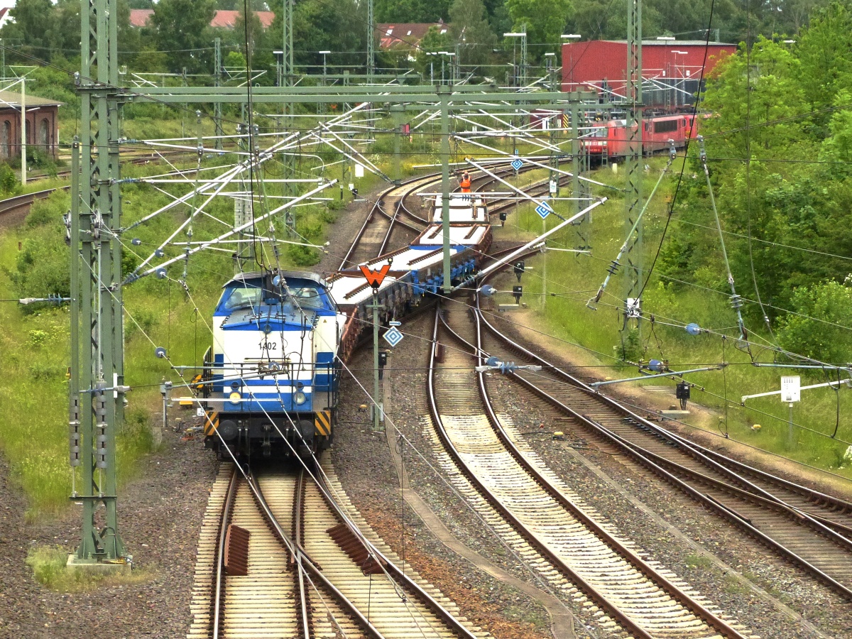 Hbf (Sdl)... Hinter der Lok hingen der Schienenfräszug MG31 LINMAG