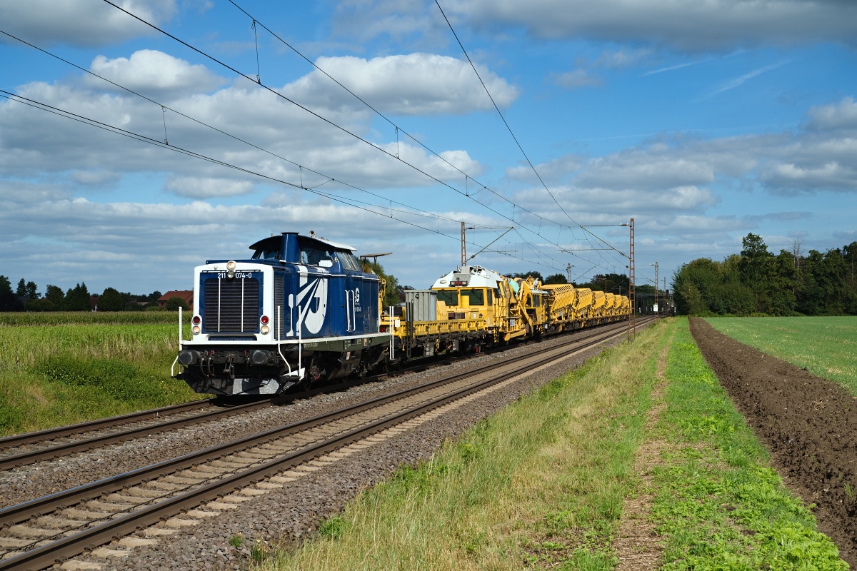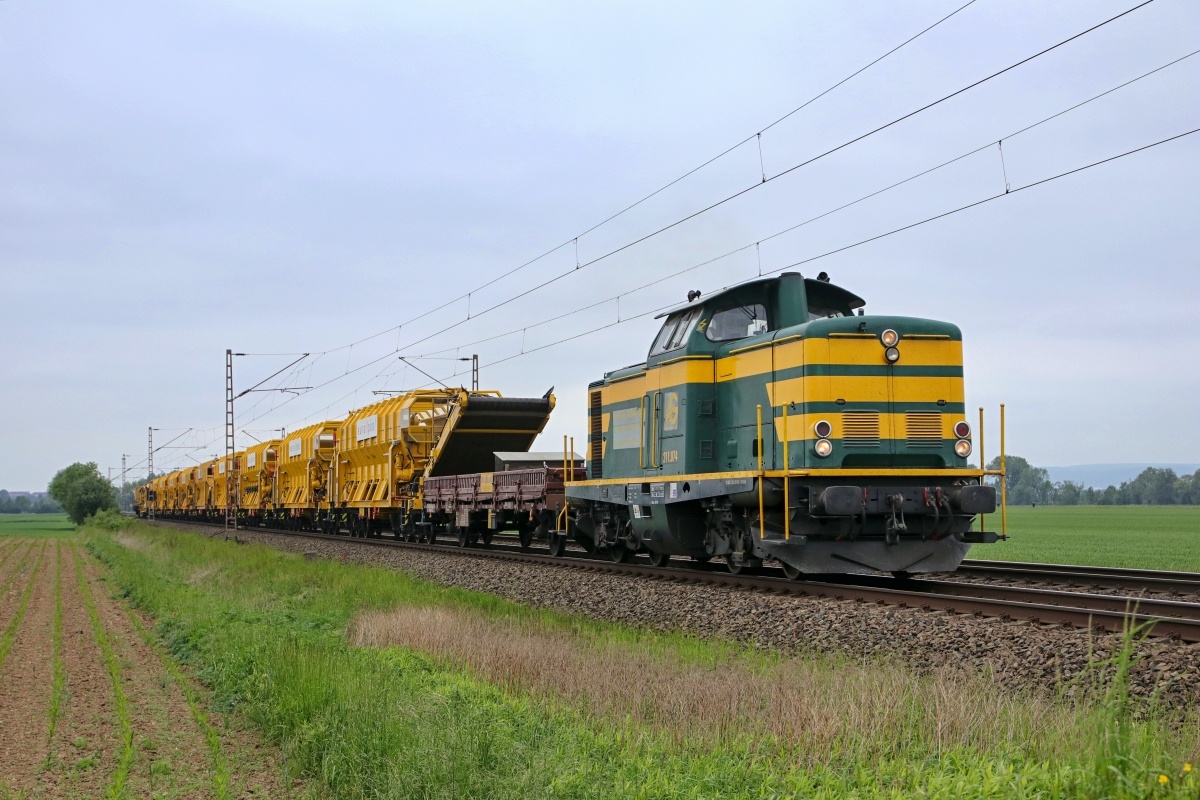 211 074-0 (NVR: 92 80 1211 074-0 D-EGB) passierte hier am 18.05.2018 Niedernjesa mit einem Gleisbauzug Rtg. Süden...
