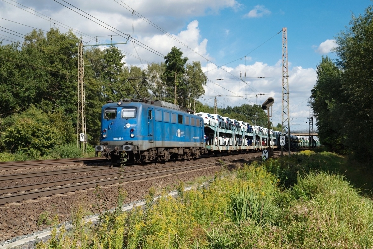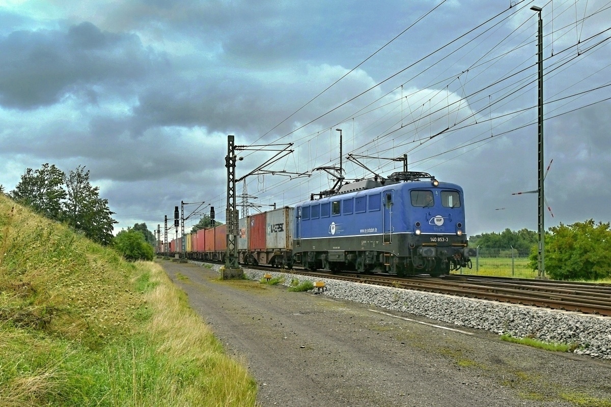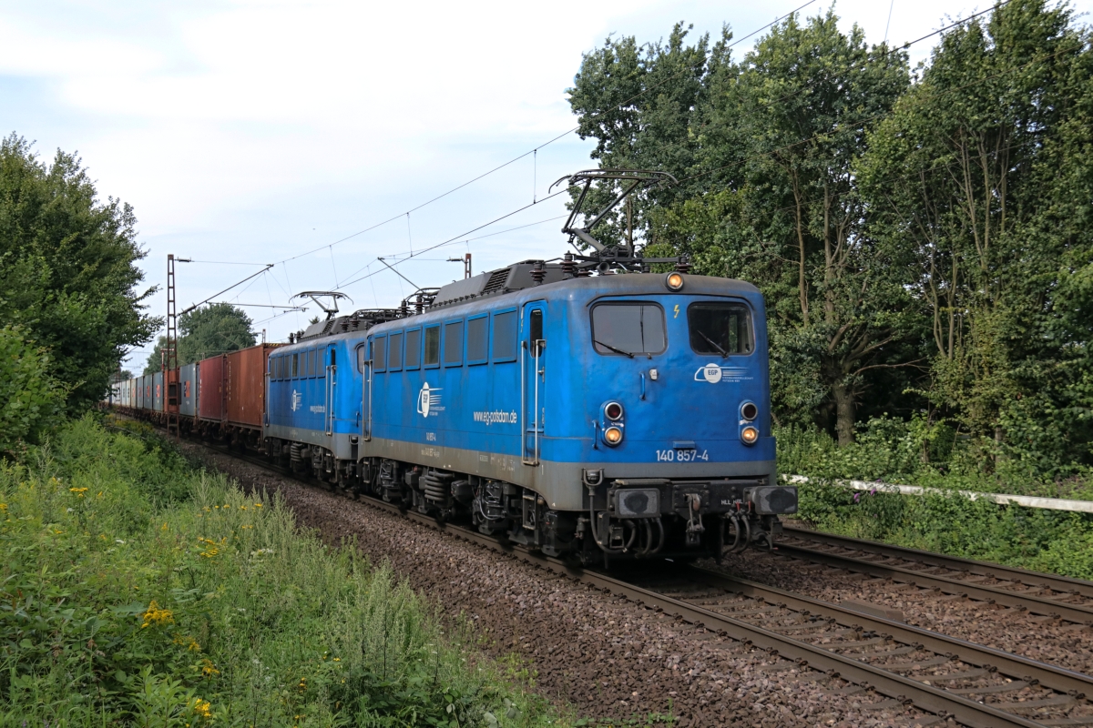 Dto. 140 853-3 am 20.08.2021 mit einem CT-Zug in Bremerhaven-Weddewarder