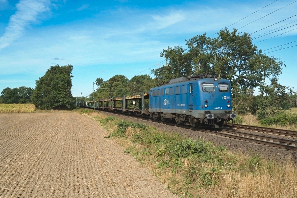 Dto. 140 037-3 am 06.08.2024 bei Vechelde (HVEC) Sierße mit dem CT-Zug