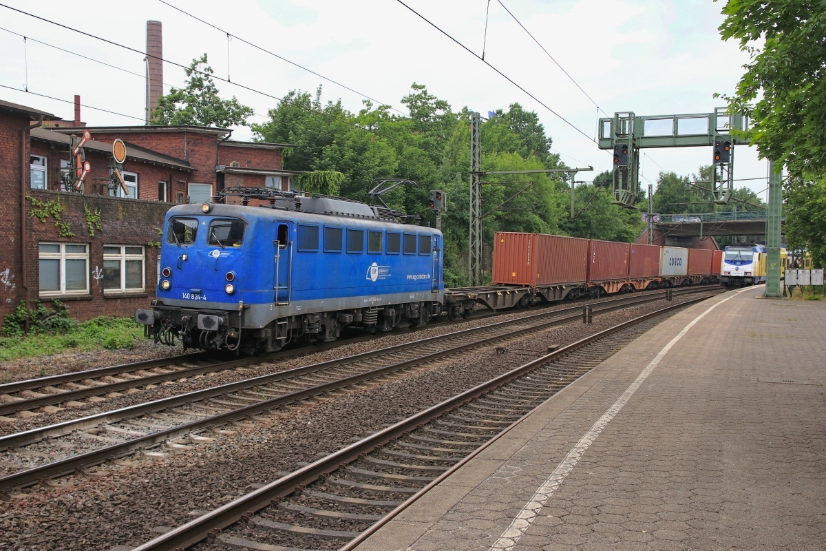 Dto. 140 824-4 am 20.06.2018. Hier passierte die Lok den Harburger Bahnhof