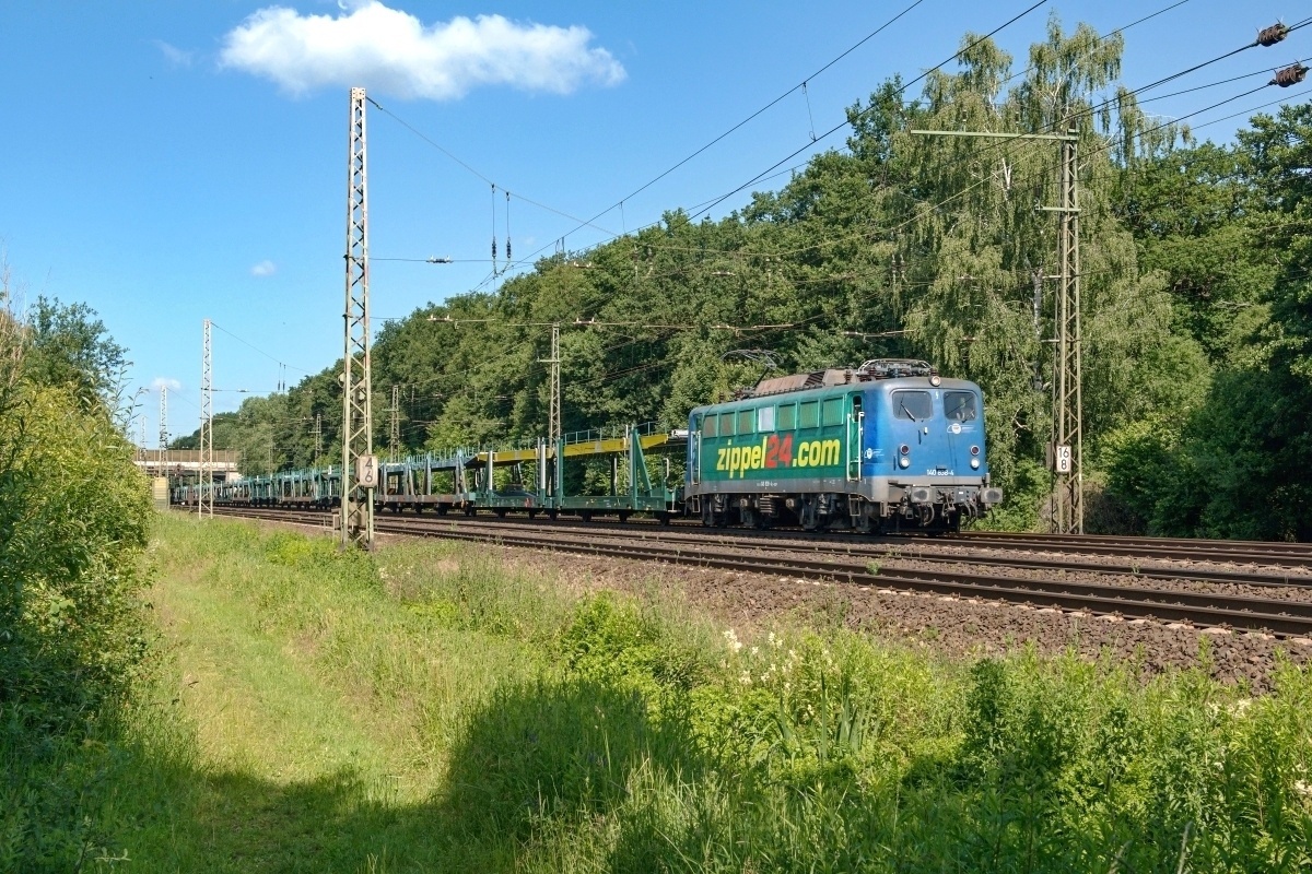 mit einem Leer-Altmann Autozug Rtg. Süden/Wunstorf und weiter nach
