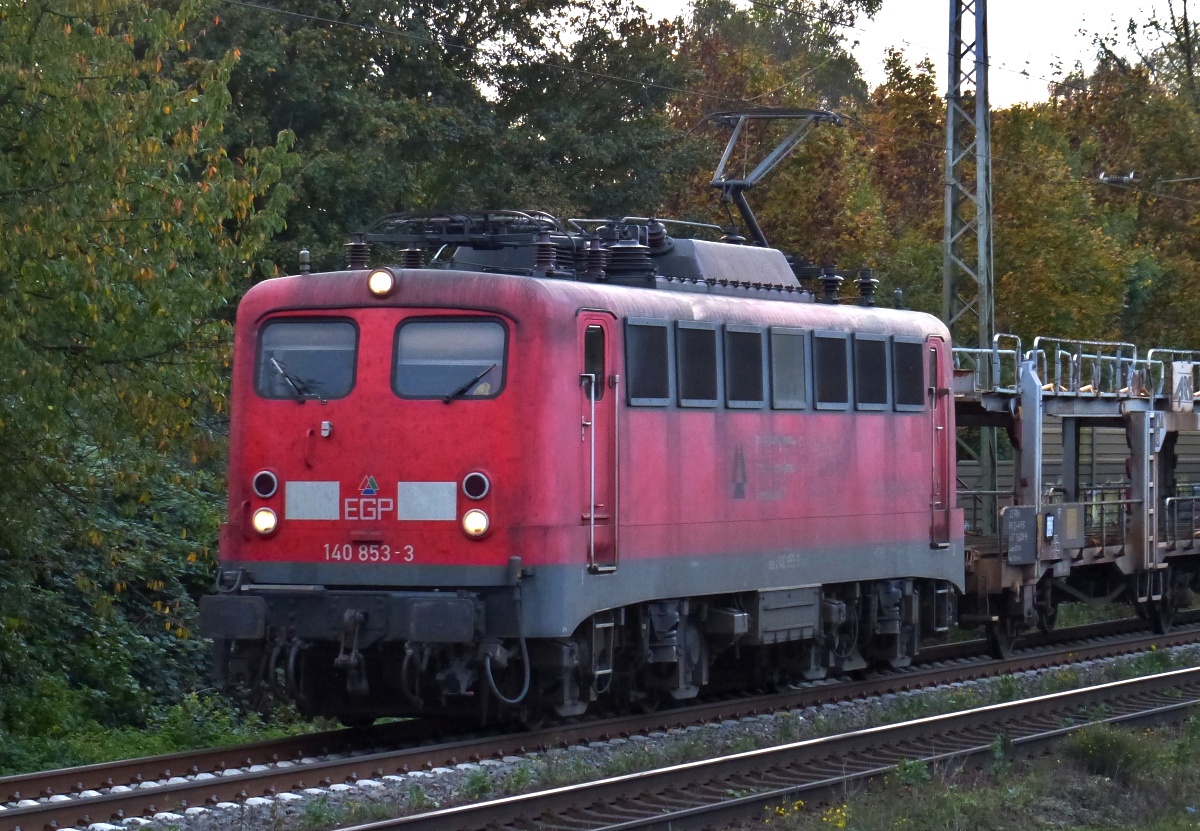 ...dto. 140 853-3 am 13.10.2017 bei AHlten (HALT) Hier war die Lok in der aktuellen blauen Farbgebung mit