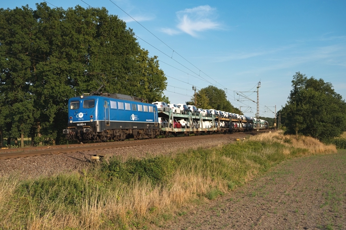 Dto. 140 853-3 am 23.08.2022 im Abendlicht bei Linsburg (HLBU) mit einem