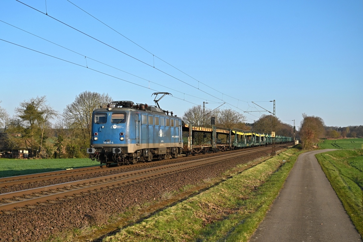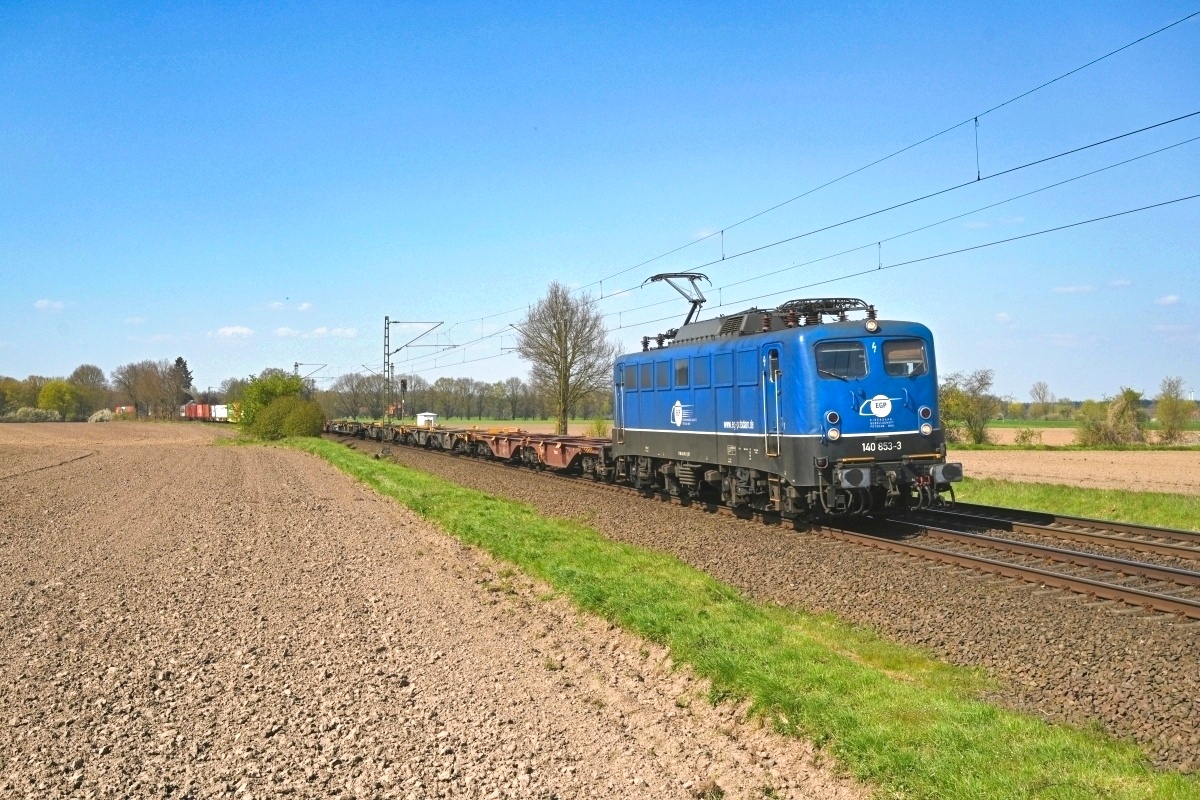 Dto. 140 857-4 am Do 06.04.2023 bei Eilvese (HEIV) mit Altmann Leer-Laaers