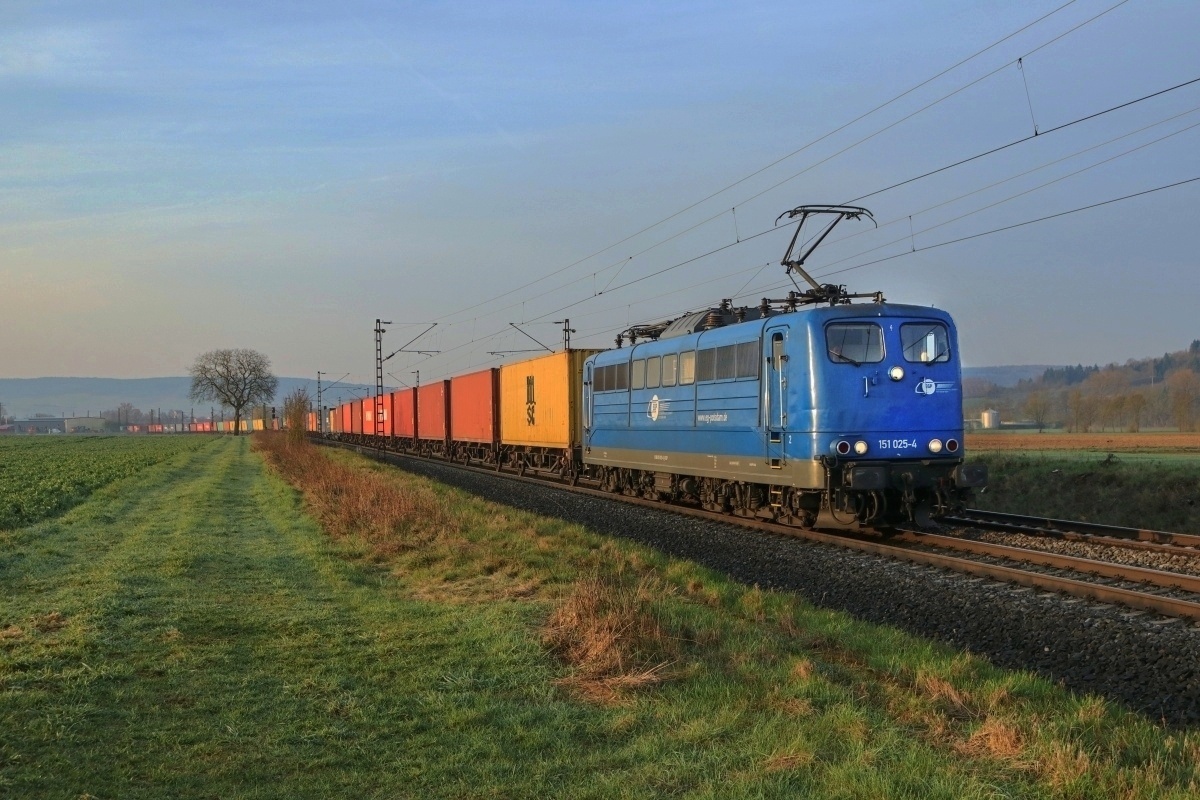 Dto. 151 025-4 früh morgens am 10.04.2018. Hier passierte die Lok Retzbach-Zellingen