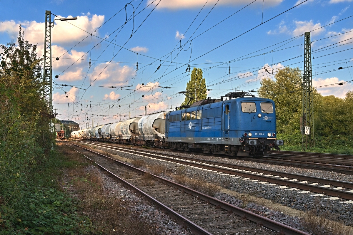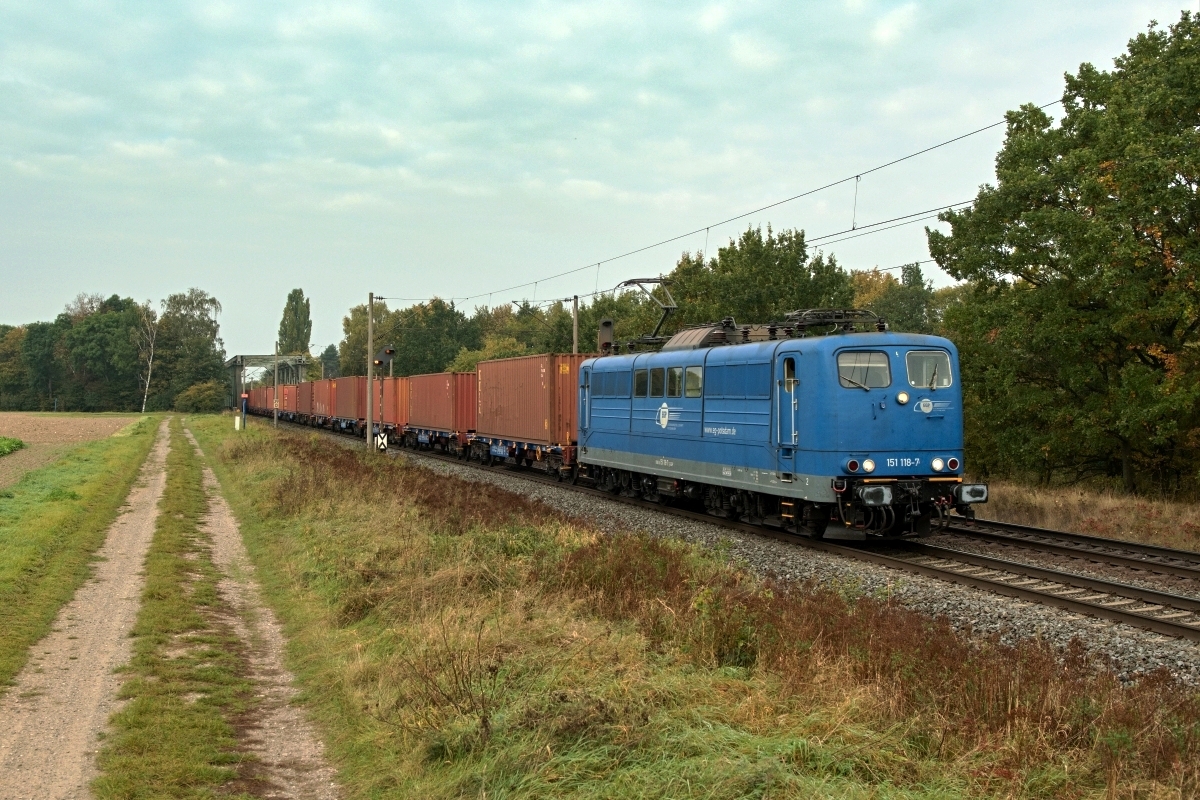 Dto. 151 118-7 am 08.10.2021 bei der Kanalbrücke Woltorf (HWOT) mit dem DGS