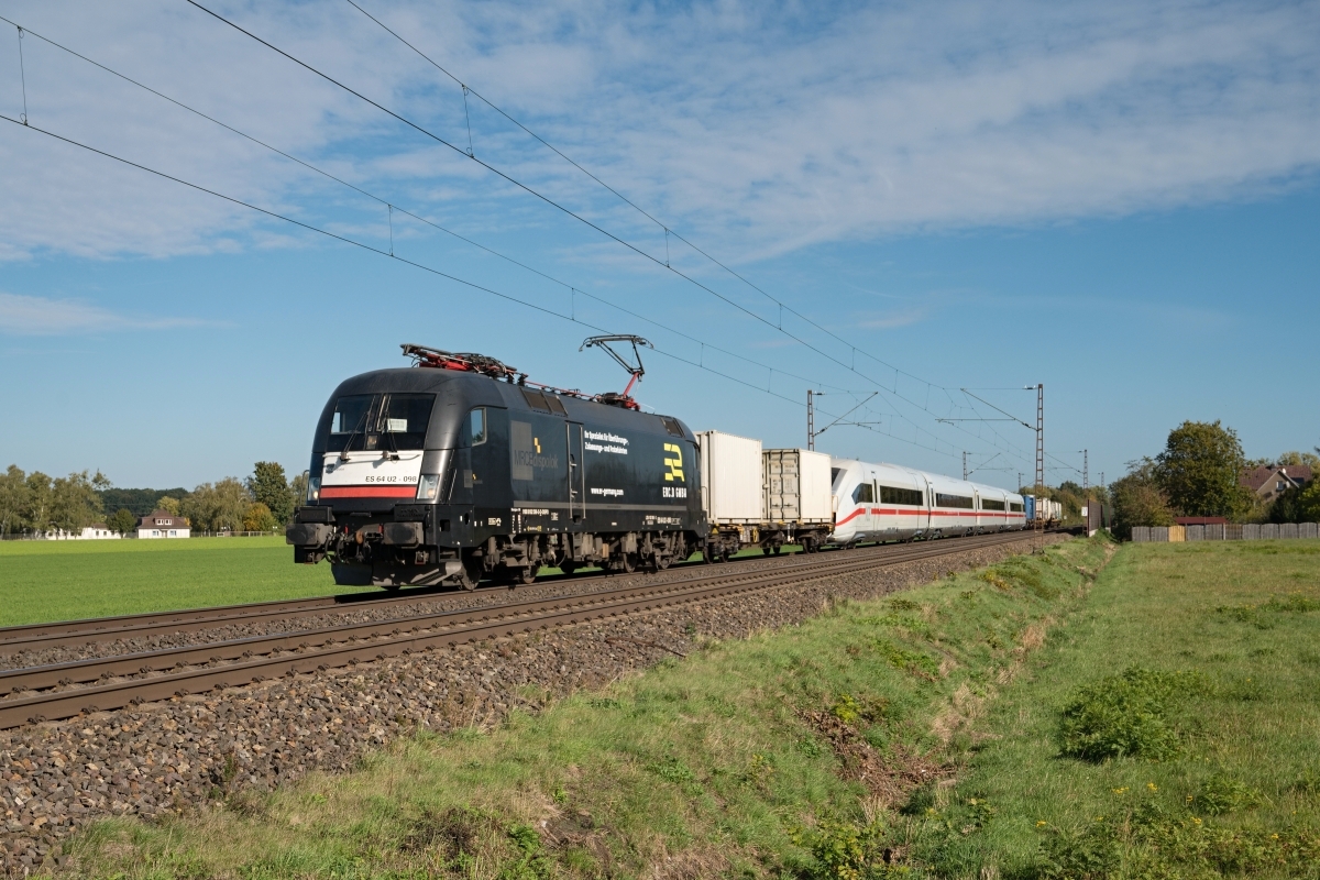 182 598-3 im aktuellen Design am 12.10.2022. Hier war die Lok bei Bückeburg (HBKB)