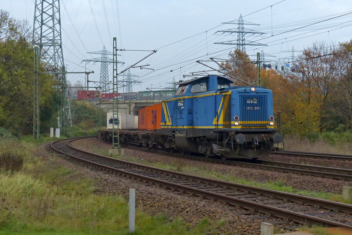Dto. 213 341-1 am 09.11.2017. Hier kommt die Lok mit CT-Wagen vom Rbf