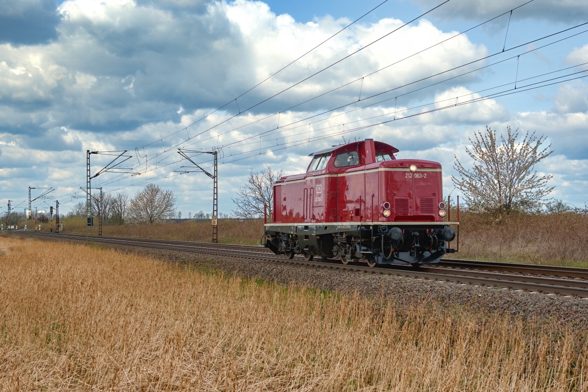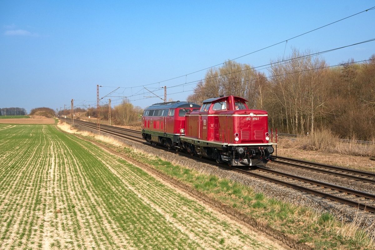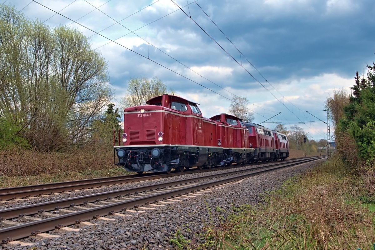 P Dto. 212 047-5 am 09.04.2021 bei Bückeburg (HBKB) Evesen mit 212 063-2 (NVR: