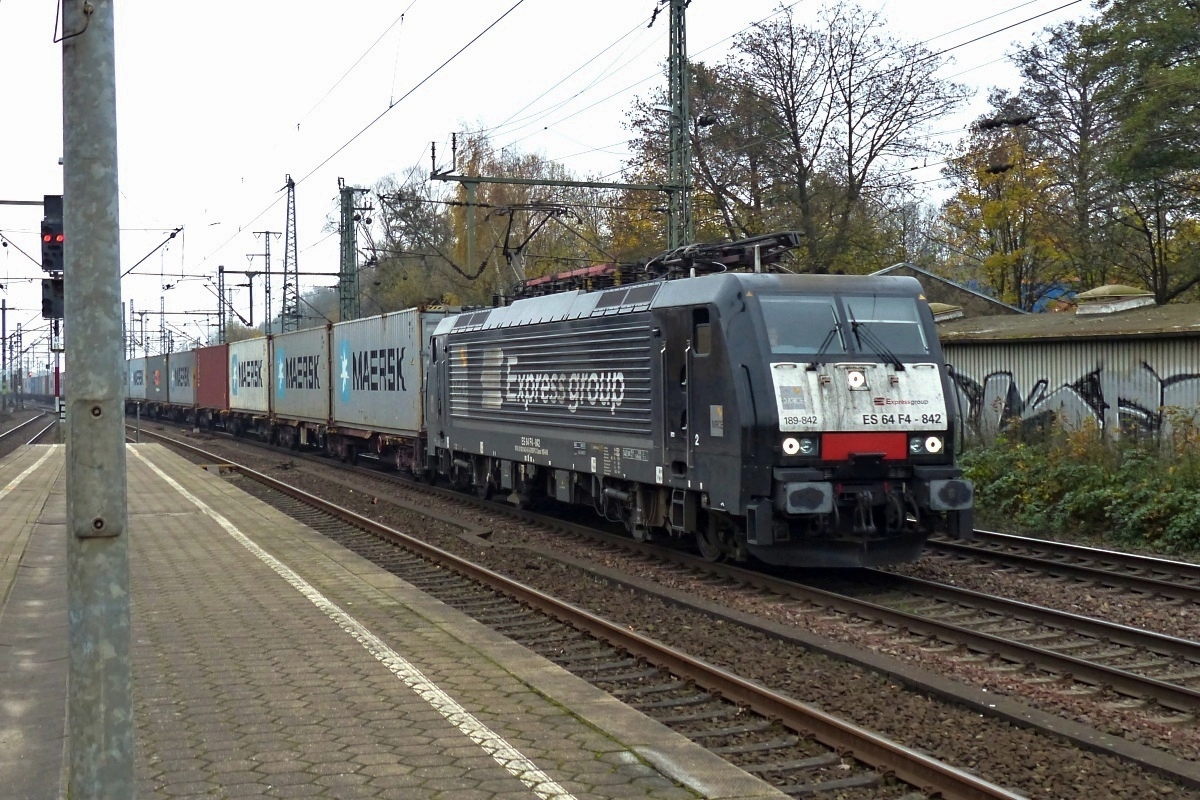 189 842-8 (NVR: 91 80 6189 842-8 D-DISPO) passierte hier am 09.11.2017 Harburg mit einem CT-Zug nach Waltershof...
