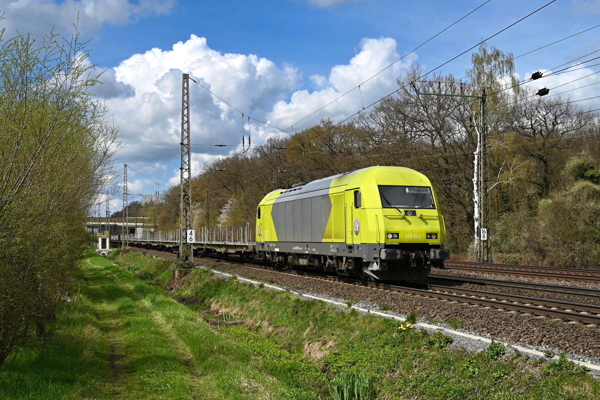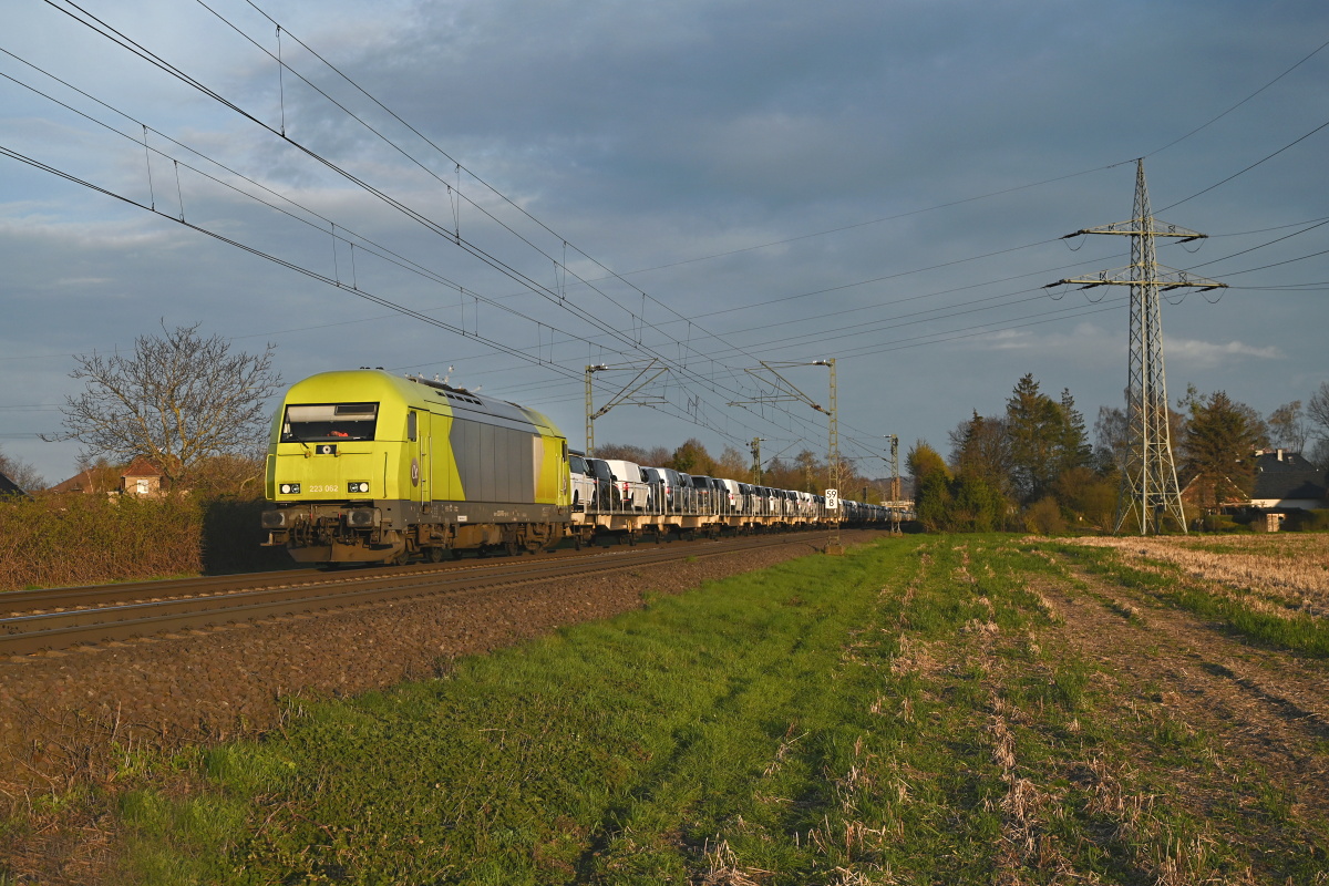 Dto. 223 062-1 am 14.04.2023 im Abendlicht bei Bückeburg (HBKB) Evesen mit