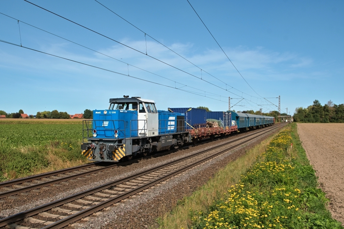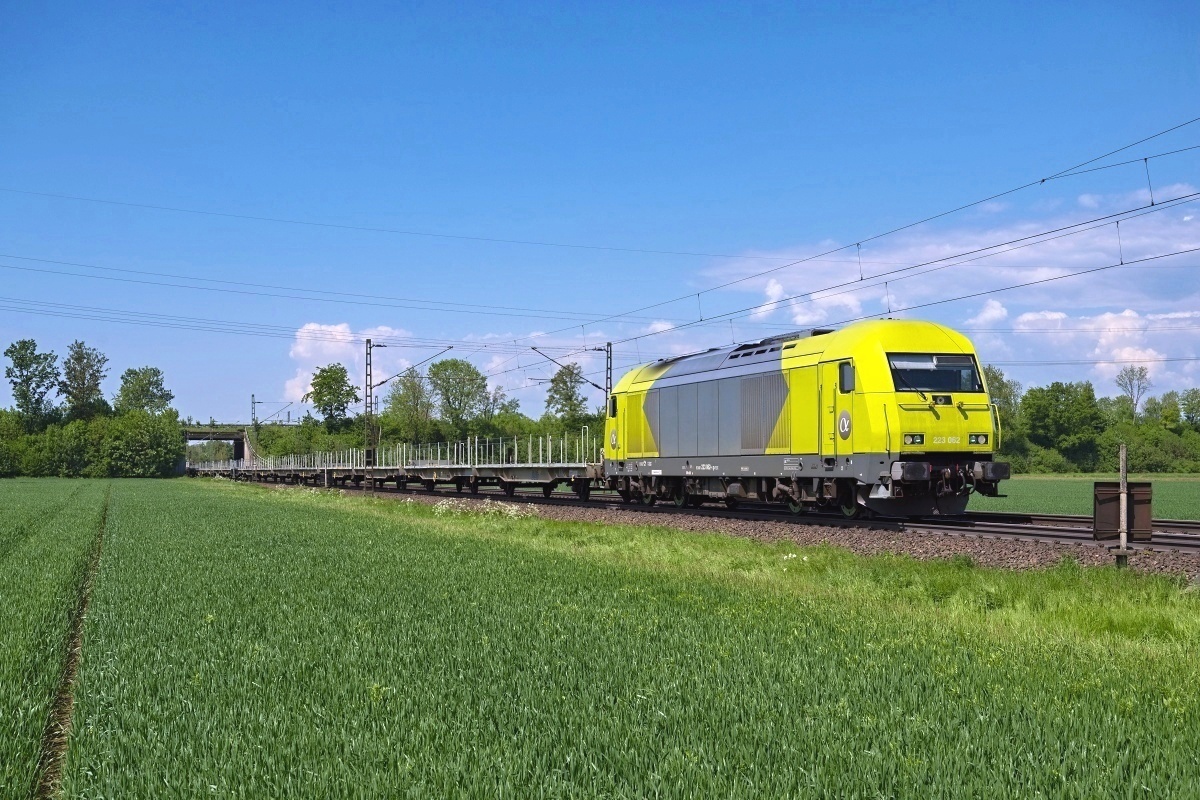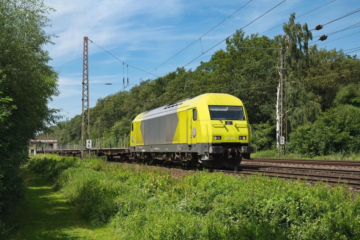 Dto. 223 062-1 am 12.07.2023 im Gümmer Wald (HGUE) mit unbeladenen BLG Laadgrs von