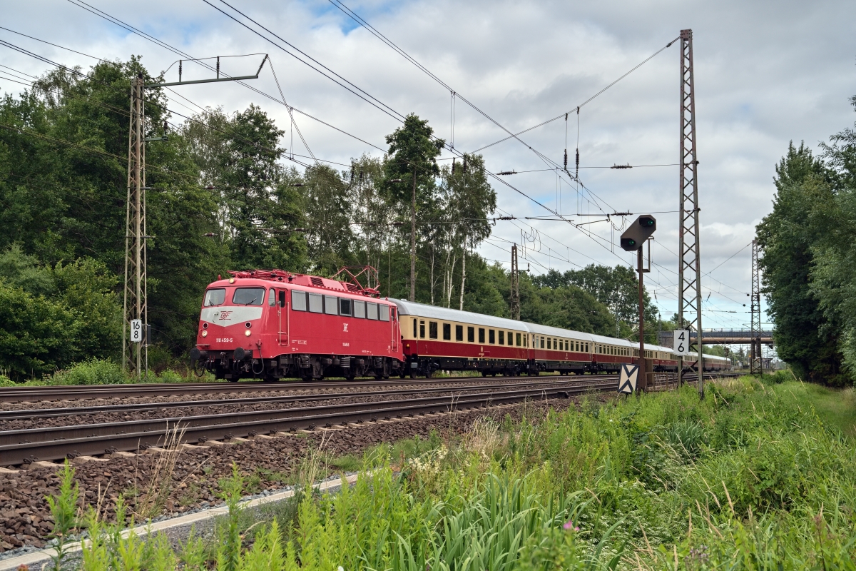 war hier am 10.07.2022 bei Dedensen-Gümmer (HDED) mit dem AKE321 "Rheingold" von
