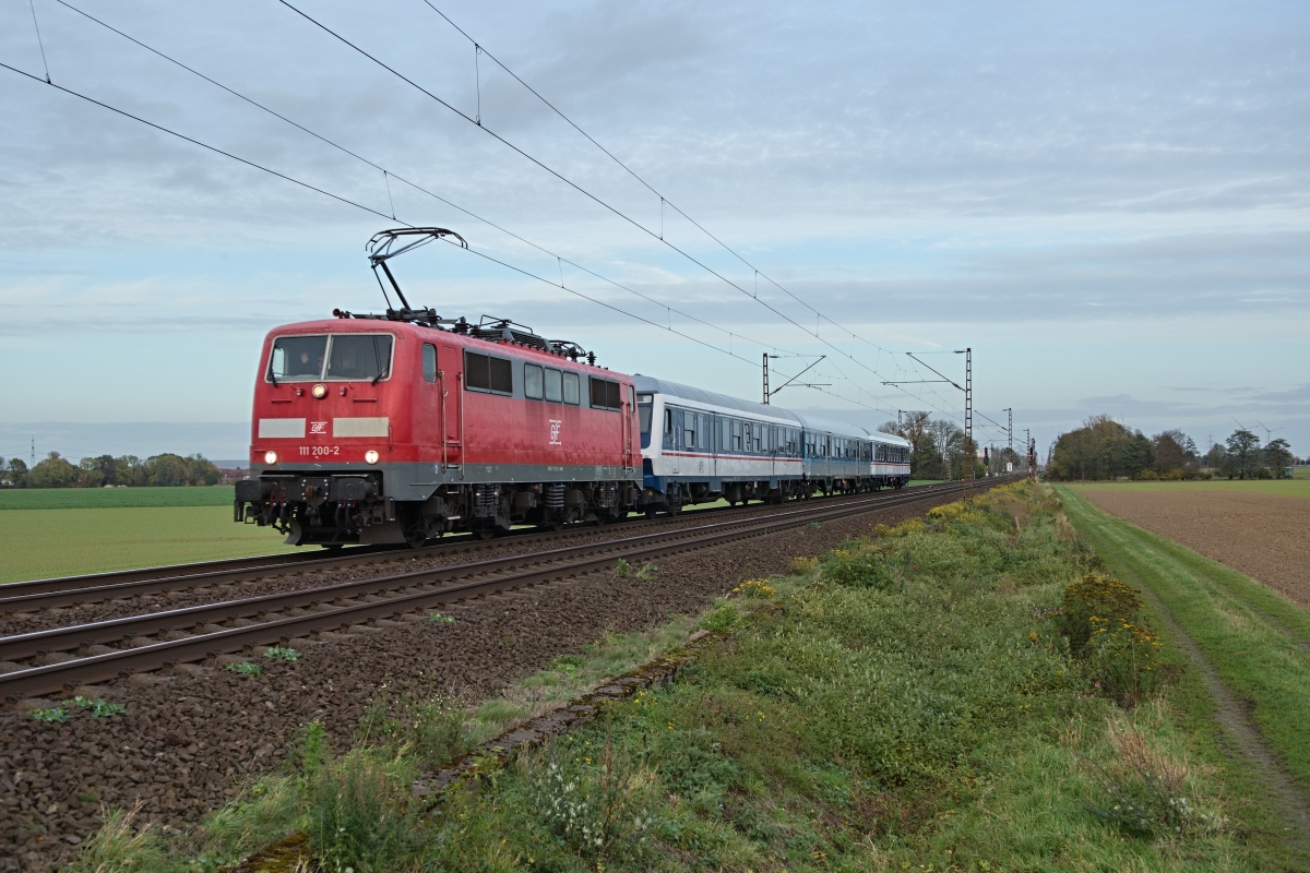einigen Rotlingen und am Zugende mit Wagenlok 110 350-6 als DLr 26488 von