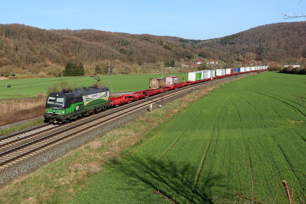 war hier am 22.03.2019 bei Retzbach-Zellingen mit Wagenlok 193 235-9 (NVR: