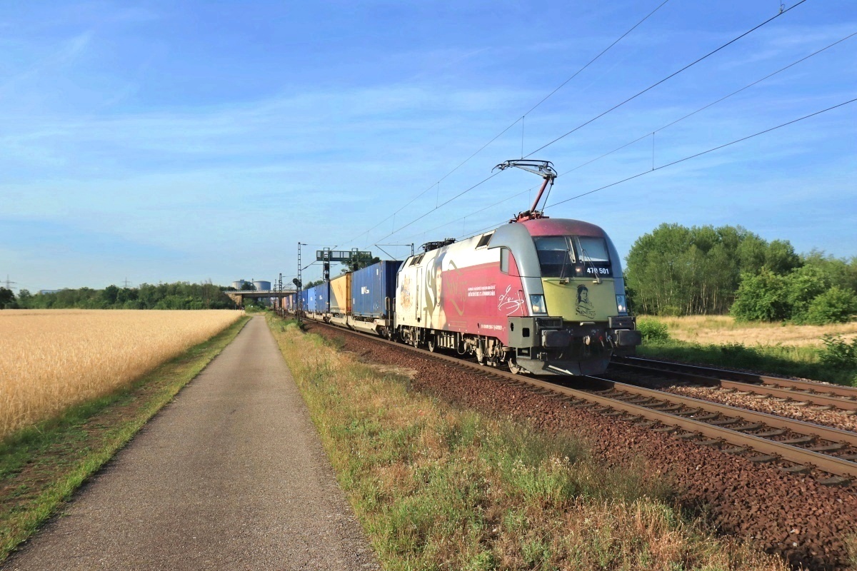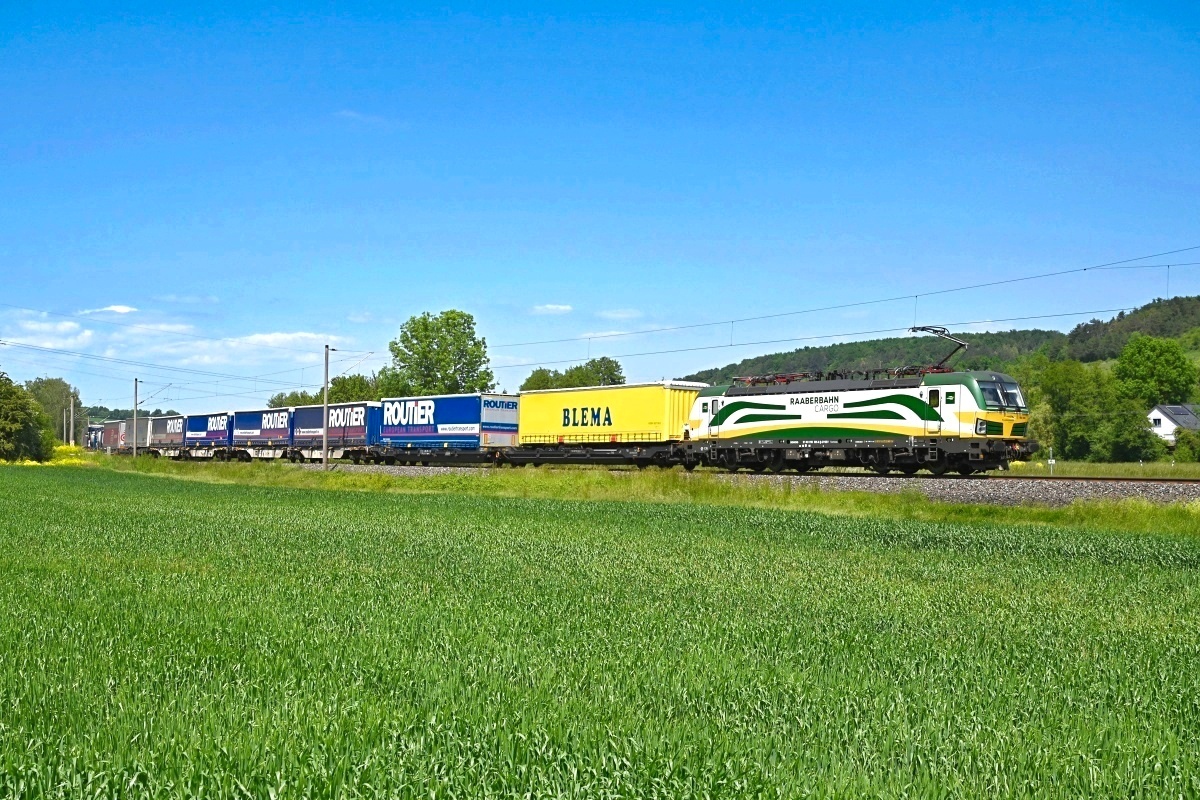 am 26.05.2023 bei Karlstadt-Stetten (Unterfranken) km 25.6 mit dem DGS 40671 von Köln-Eifeltor nach Curtici (XUCU)