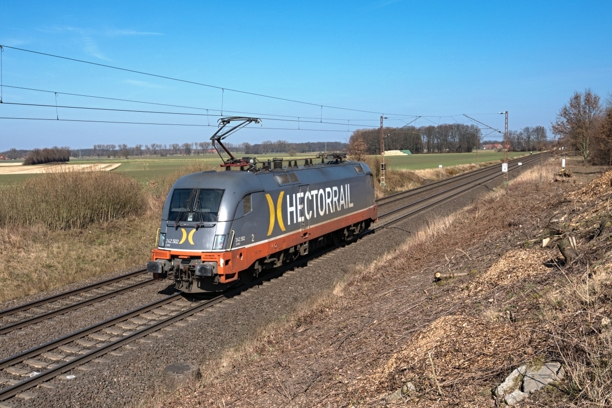 Dto. 242 502 am 19.03.2021 bei Linsburg (HLBU) Borstel mit dem DGS 52750 von