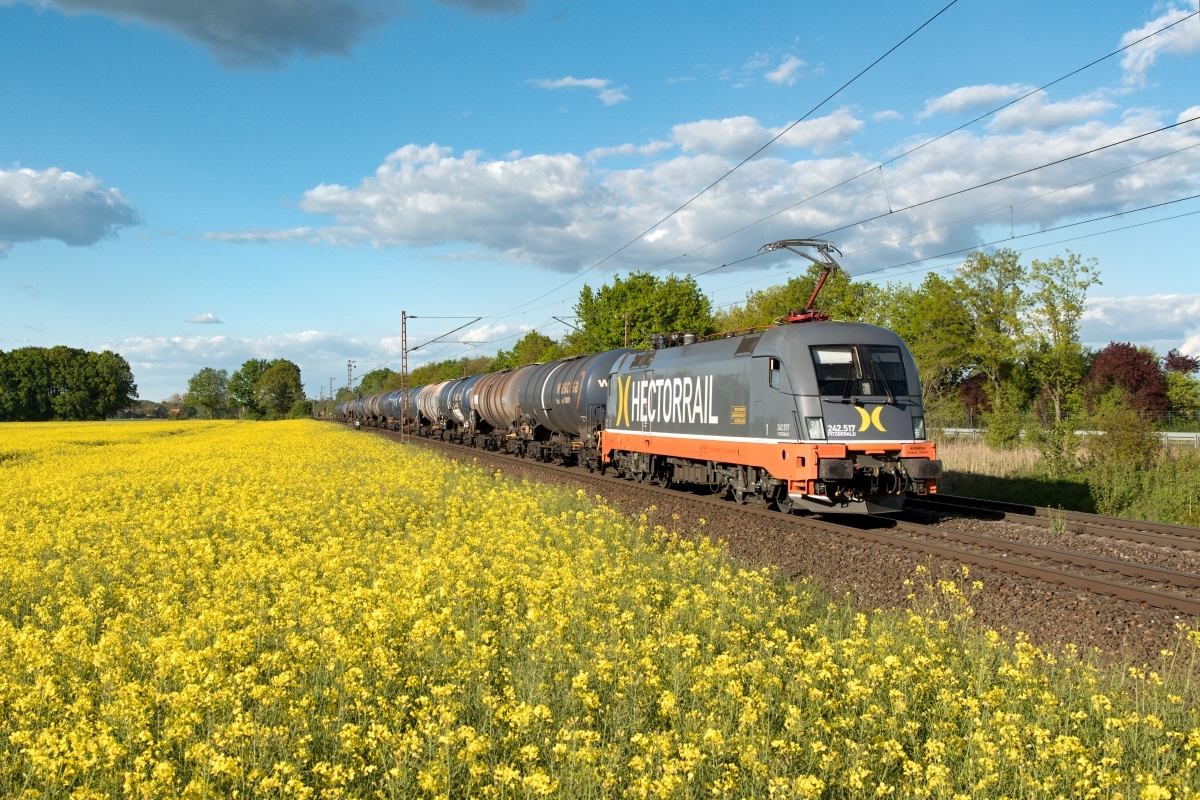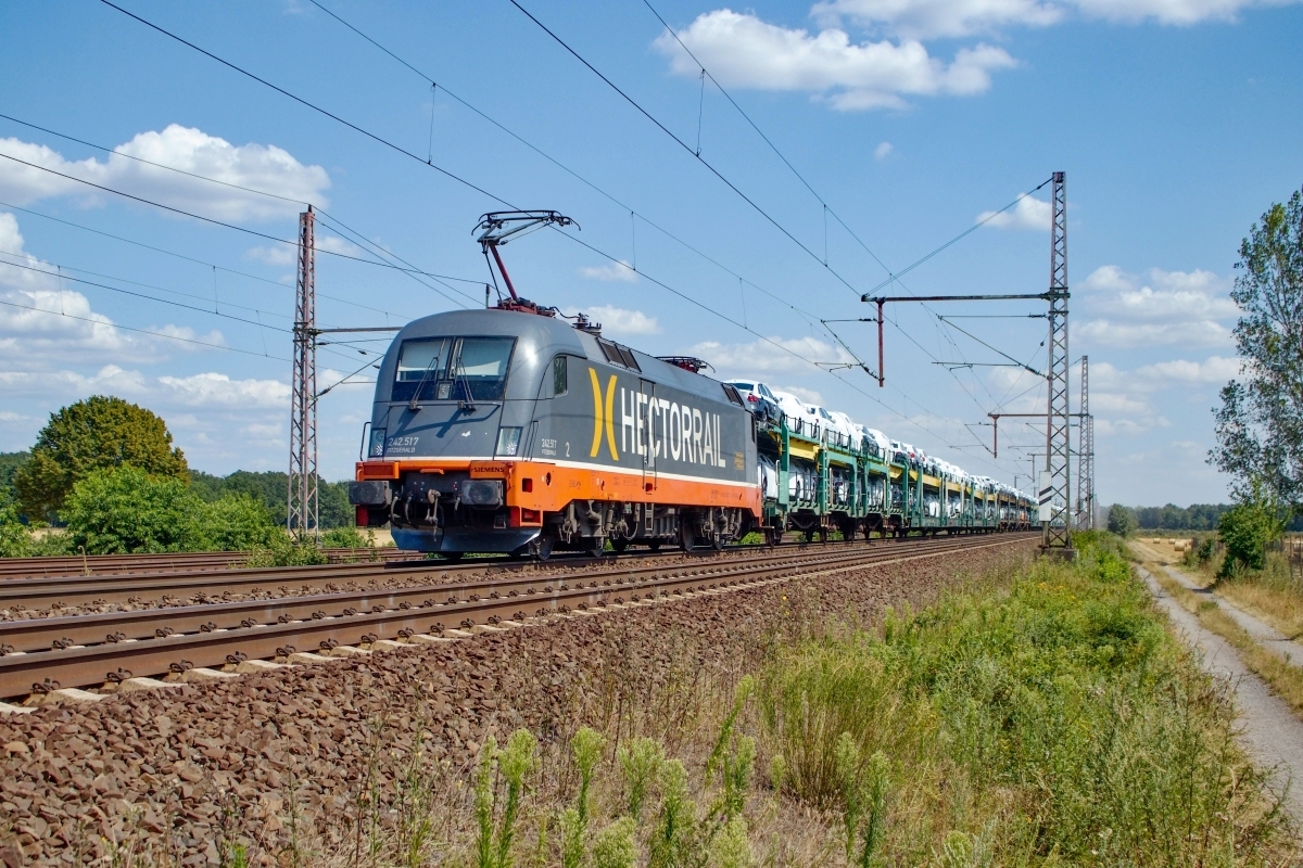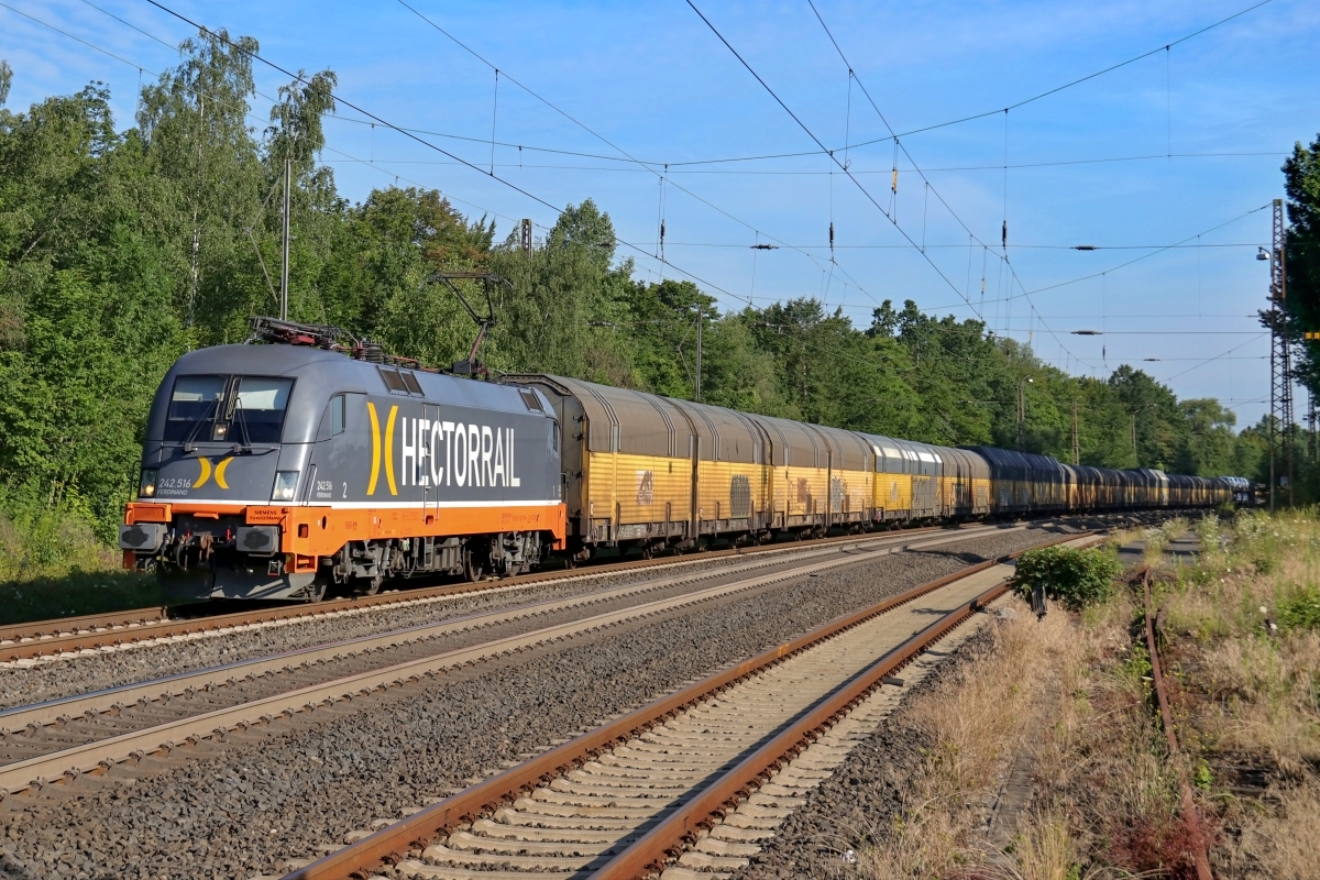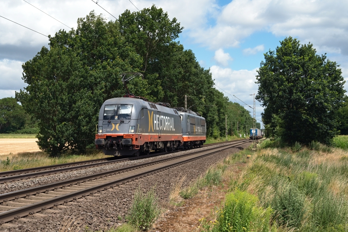 Dto. 242 517 am 27.07.2019 wieder mit der "HECTORRAIL" Folie bei Dedensen-Gümmer (HDED) mit