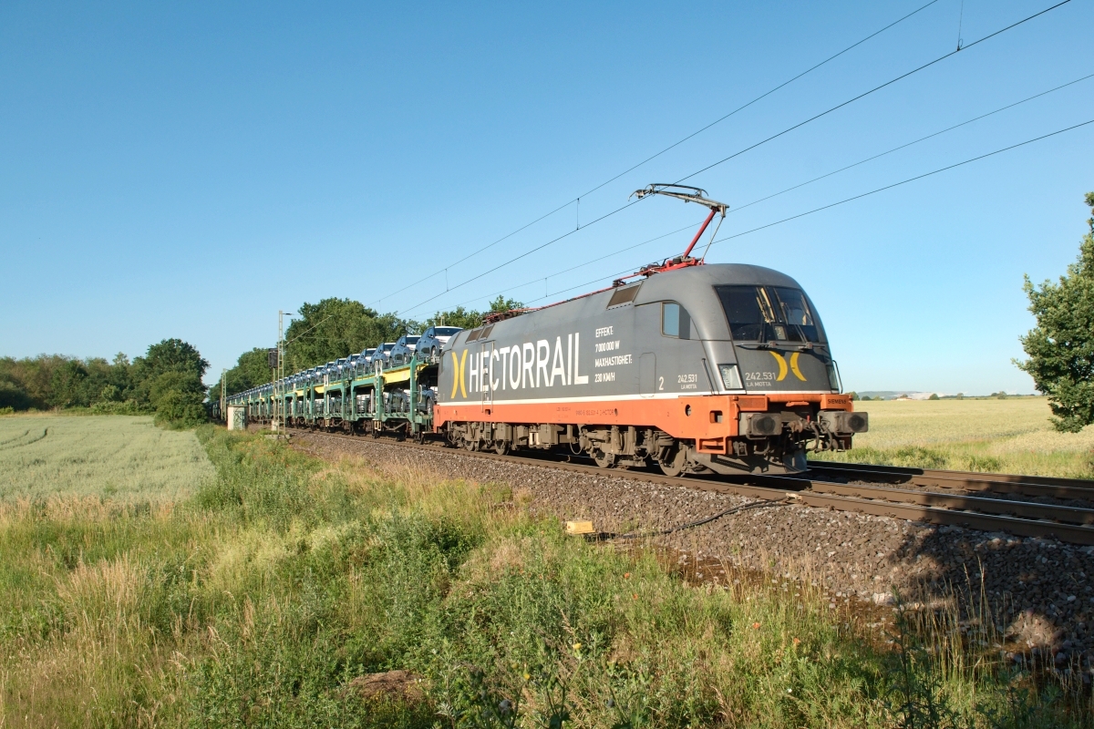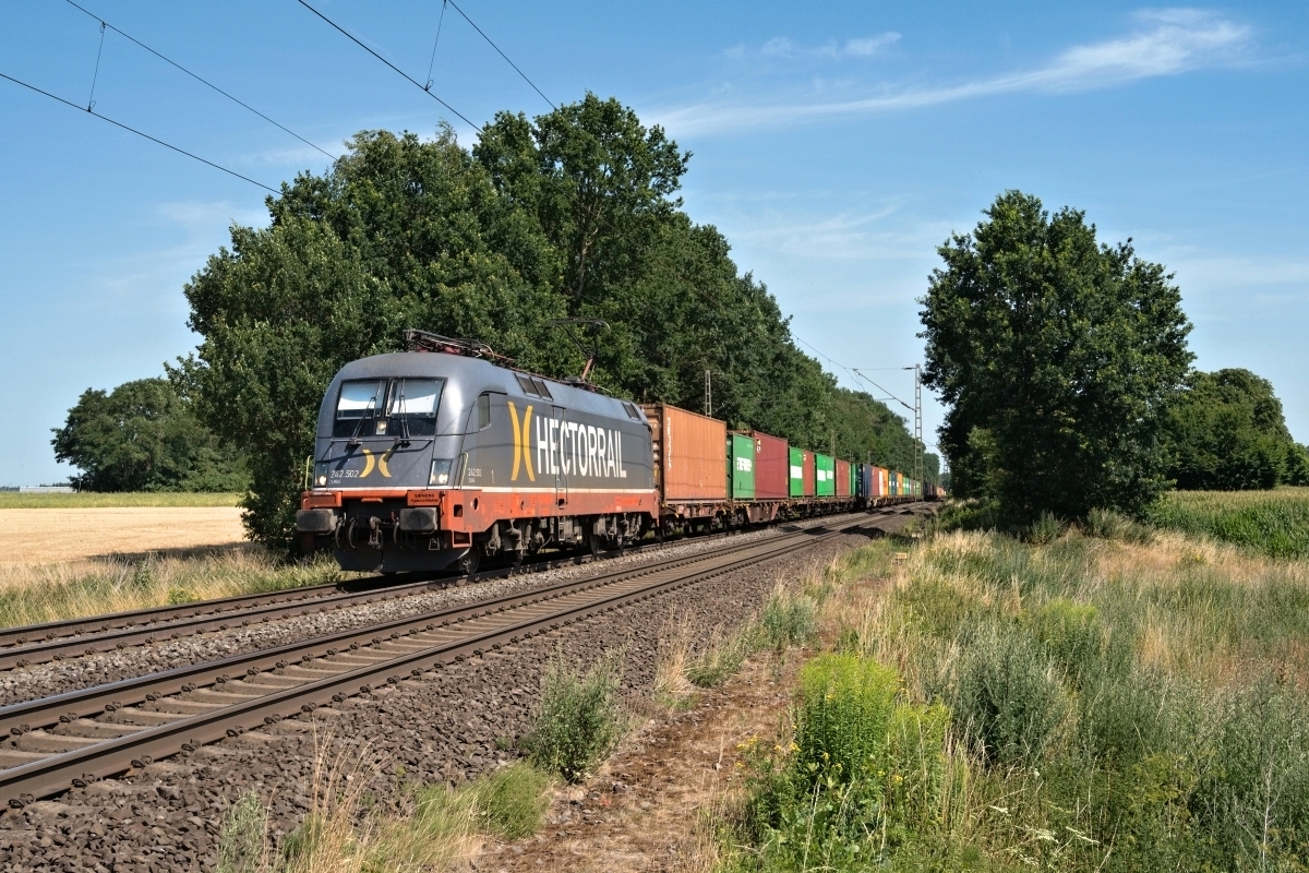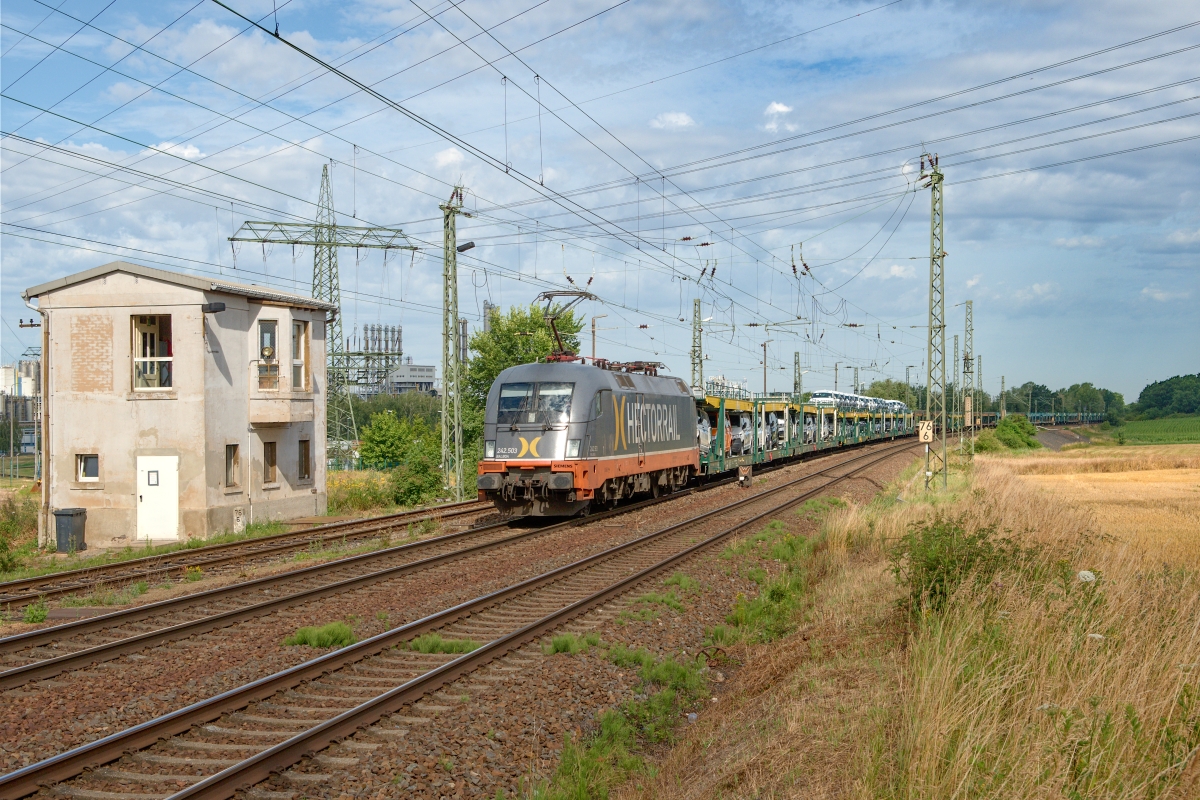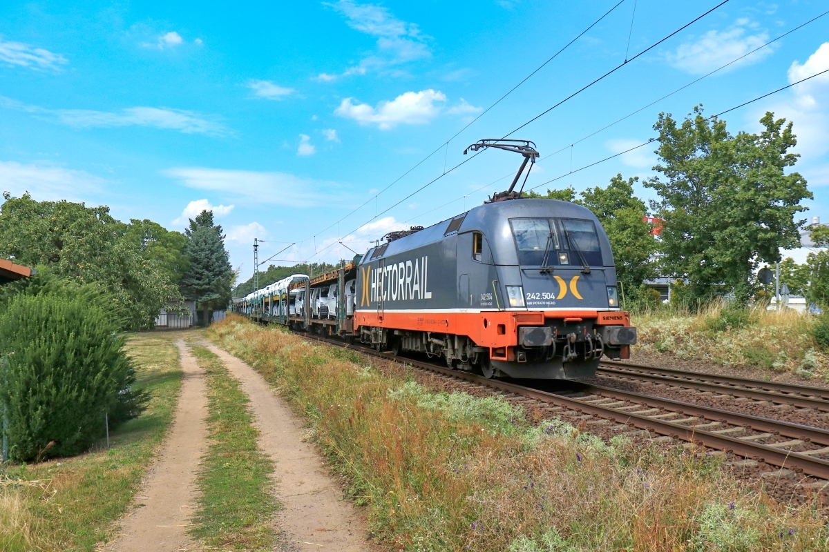 Dto. 242 517 am 27.07.2019 wieder mit der "HECTORRAIL" Folie bei Dedensen-Gümmer (HDED) mit
