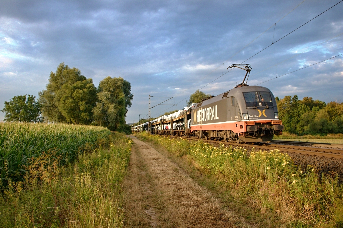 Dto. 242 504 am 18.07.2019. Hier passierte die Lok am Dettingen am