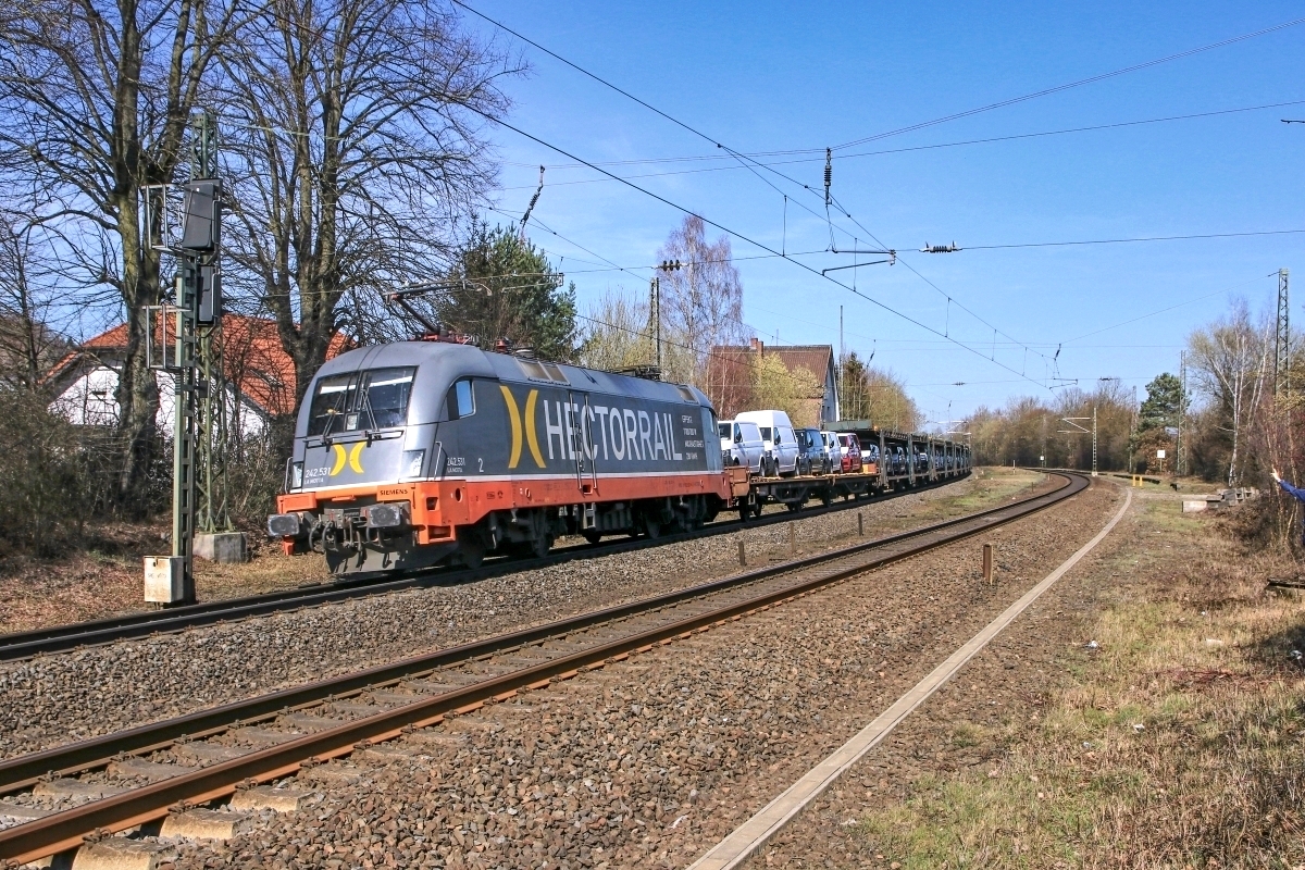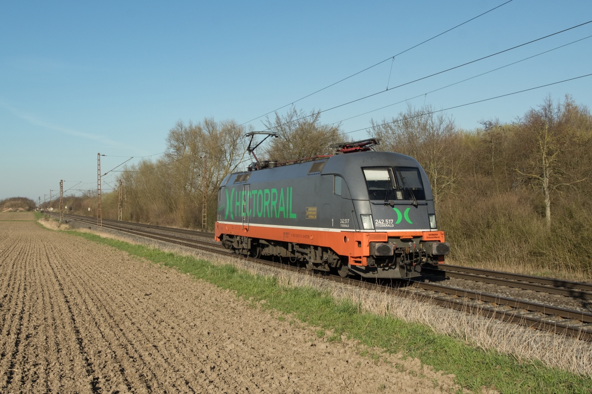 Dto. 242 504 am 06.04.2018. Hier passierte die Lok Harrbach mit dem voll