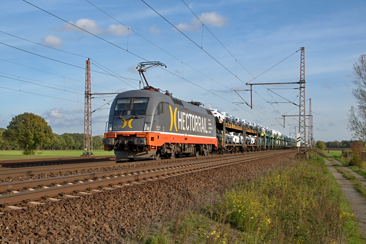 Dto. 242 531 am 09.10.2019. Hier war die Lok bei Benhausen (HBNS) mit