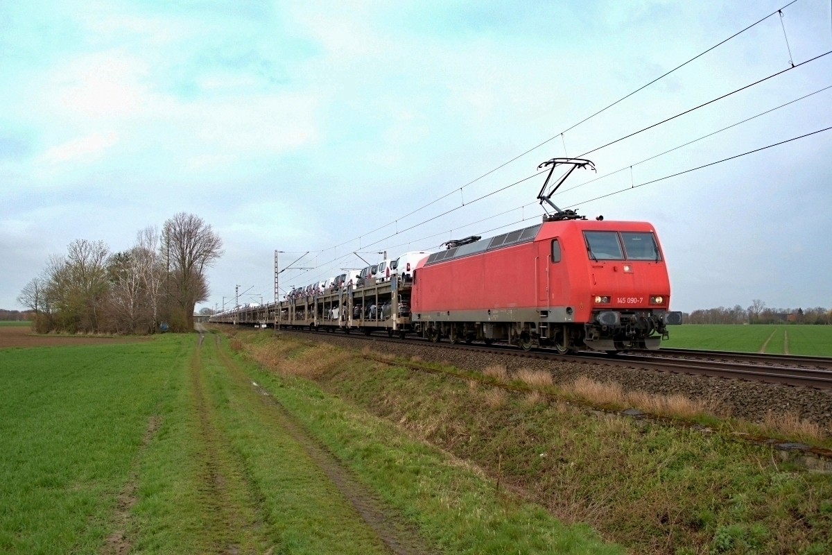 Dto. 145 090-7 am 08.04.2021 bei Lindhorst (HLH) Vornhagen mit dem DGS 41591 von